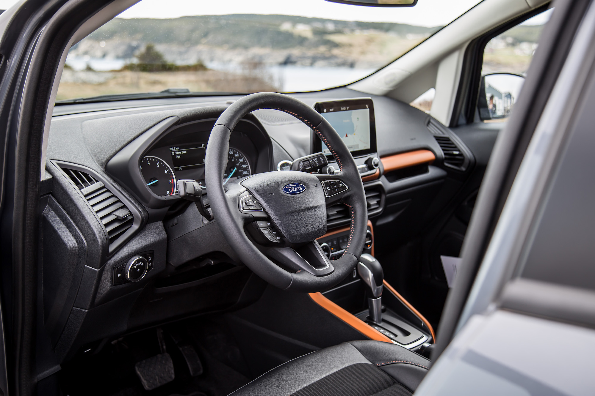 The EcoSport nameplate is bit of an oxymoron. I’m sure this baby crossover is economical but I’m not so convinced about the “Sport”. As mentioned, Canadians get a choice of two engines, and I had a chance to sample both engines across the beautiful landscapes around St. John’s, Newfoundland. I encountered many uphills and downhills, which proved a bit of a challenge for both engines. The 2.0L had to work incredibly hard to get moving, with most of the power in the mid- to high-range, meaning you really had to rev it out to get some juice. It left me wanting more power. On the highways going around 100 km/h, it does drone a bit and would definitely benefit from an extra gear or two. Attempting to summon some power for overtaking at triple digit speeds is met with a lethargic and underwhelming response. This is definitely a vehicle meant for the metropolitan city streets, rather than the open road.