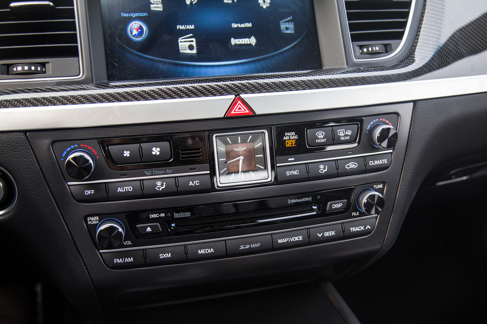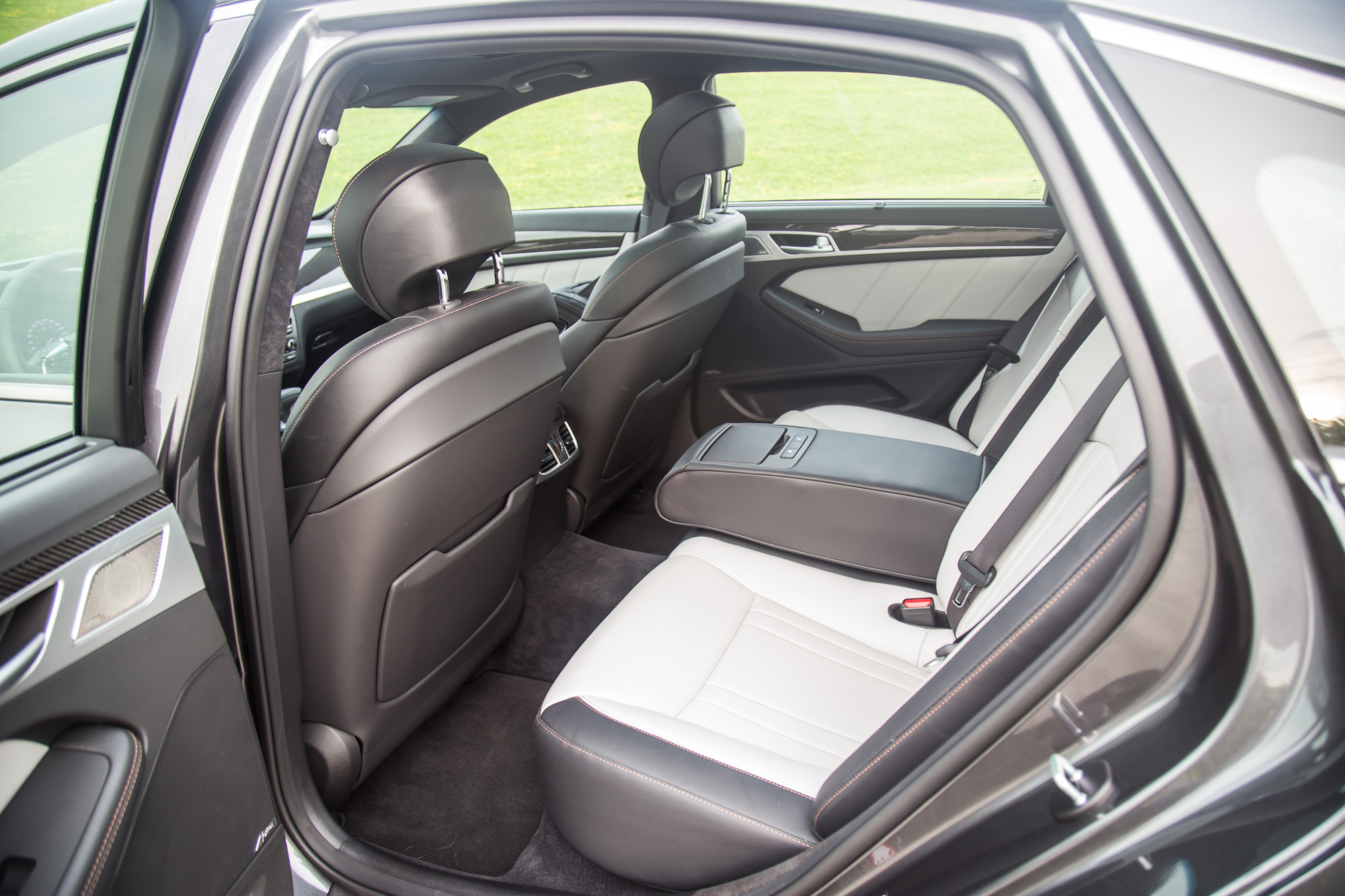 The interior is what will undoubtedly attract most buyers – Genesis’ real obstacle is actually getting prospective shoppers into their cars to experience it, because it is a lovely place to spend time in. With materials and a layout worthy of the German premium, the G80 Sport keeps up in this regard. Glossy finishes, convincing plastics, and quality feeling buttons place this G80 on the forefront of modern luxury. More of those Sport-specific copper accents make their way in here as well: steering wheel and seat stitching, and analog clock backwash.