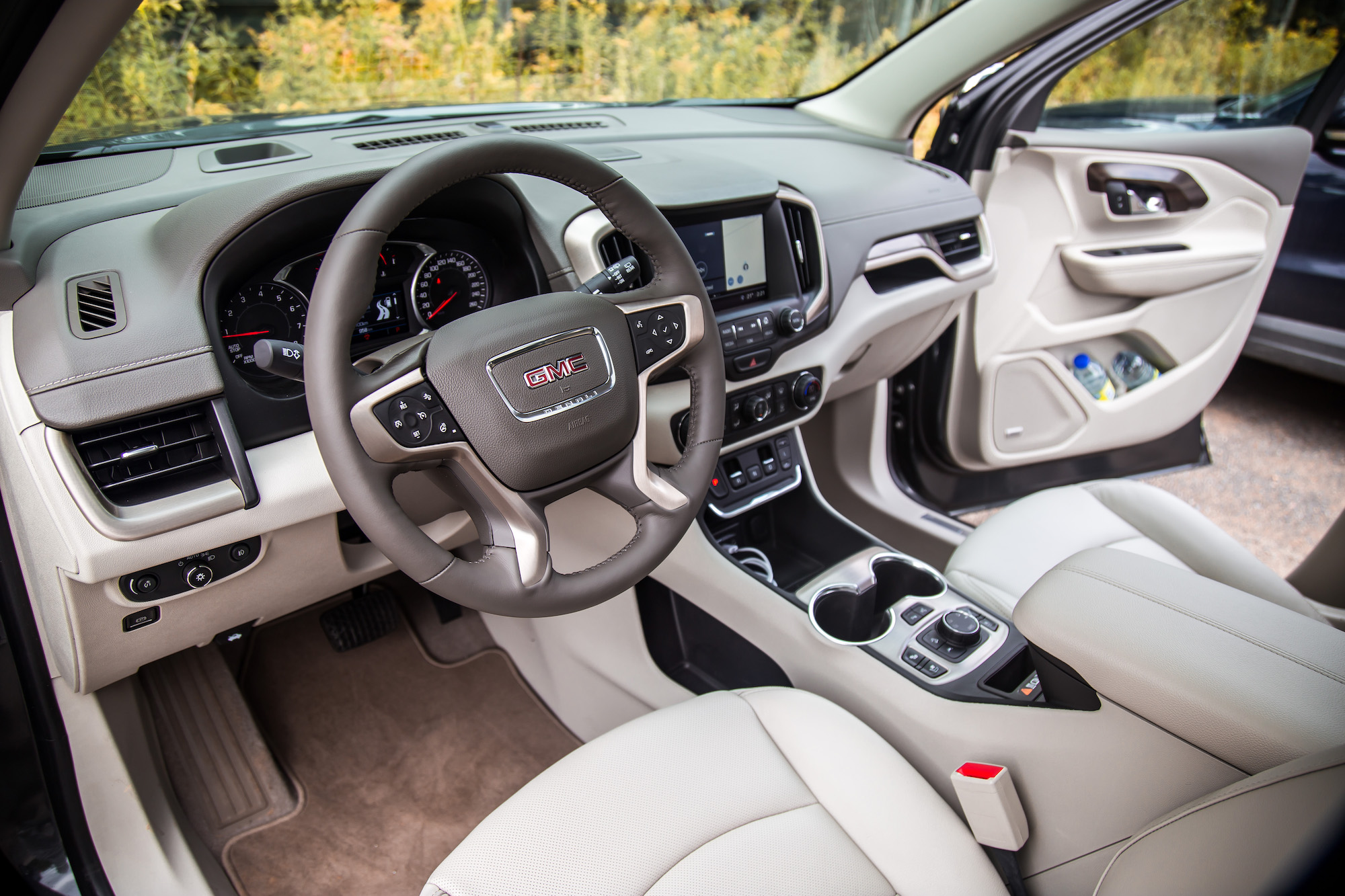 There are three engines to choose from: a 1.5-litre turbocharged four-cylinder which produces 170 hp and 203 lb-ft, and is only available on the base SLE trim, a 1.6-litre turbodiesel which produces 137 hp and 240 lb-ft and is optional on the SLE and SLT trims, as well as a 2.0-litre turbocharged four that delivers 252 hp and 260 lb-ft and is standard on the SLT and Denali trims while optional on the SLE. The gasoline engines are paired with a 9-speed automatic transmission while the diesel gets a 6-speed automatic. All-wheel drive is standard on SLT and Denali trims.