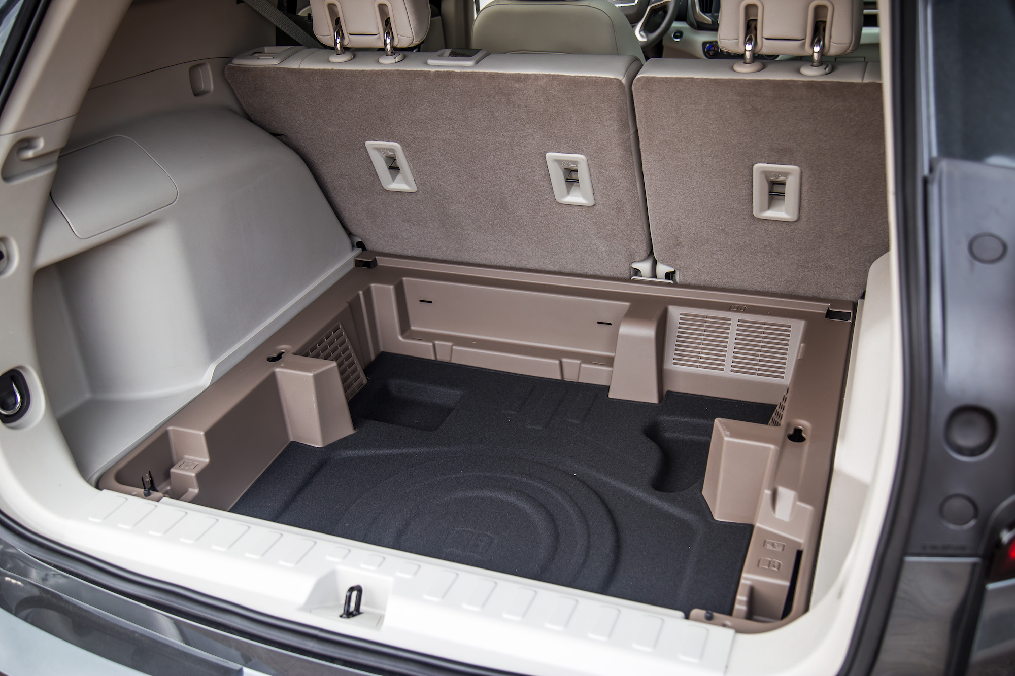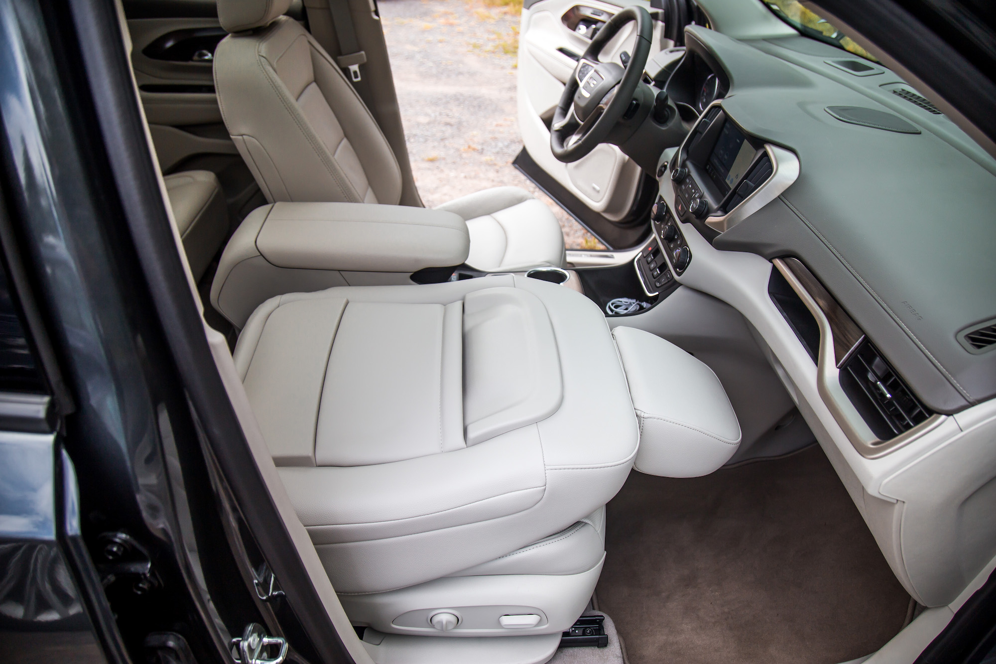 I haven’t seen this in any other crossovers, but the front passenger seat can be folded flat along with the second row seats. This means the Terrain can swallow long pieces of cargo like skis or mattresses, and while the seat releases aren’t electrically powered like it is on some luxury SUVs, the latches are easy to find and don’t require a great deal of strength to pull. The new underfloor compartment underneath the trunk cover is also quite expansive and handy for groceries and light items that might fly around during driving.