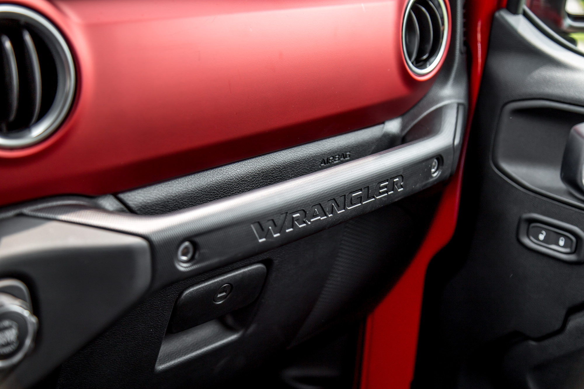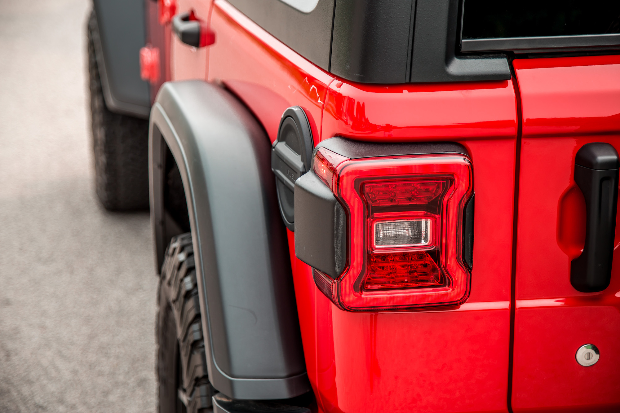 Dubbed the JL model (replacing the JK), the Wrangler receives new head- and tail-lights that appear more distinctive at night, lighter aluminum doors, hinges, and fenders, and a magnesium swing gate. The front windshield has been raked back for better aerodynamics, the windows are slightly bigger, and the trunk-mounted spare tire has been lowered for improved rearward visibility. The Wrangler has grown larger in every dimension, diverting most of that added space to rear seat legroom in four-door models and thanks to lighter materials, the Wrangler doesn’t take a weight penalty either.
