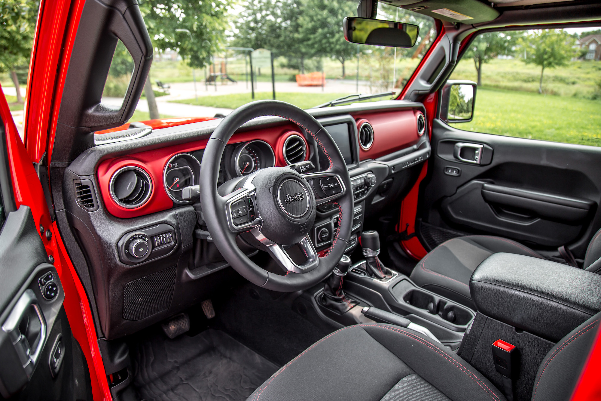 The most significant revisions lie with the interior, where the Wrangler finally feels like a premium offering in top trim levels with a revised dashboard and upgraded switchgear. Sure, the Rubicon model that we drove has manual cloth seats and everything feels more functional than comfortable, but waterproof linings, solid panel seals, covers for the USB and media outlets, and a thinner but more attractive steering wheel adds to the appeal of its $60,000 as-tested price tag. Wranglers now come equipped with 5.0-, 7.0-, and 8.4-inch touchscreens (splash-proof, as they say) which I have tested in other Dodges and Jeeps, and are easy to use with large screen prompts and physical dials for volume and tuning. The colours are vibrant, the graphics are crispy, and Apple CarPlay and Android Auto are standard across the board. Oh, and did I mention that the steering wheel not only tilts, but can now telescope as well? I can finally find a comfortable seating position without having to sit awkwardly straight up.