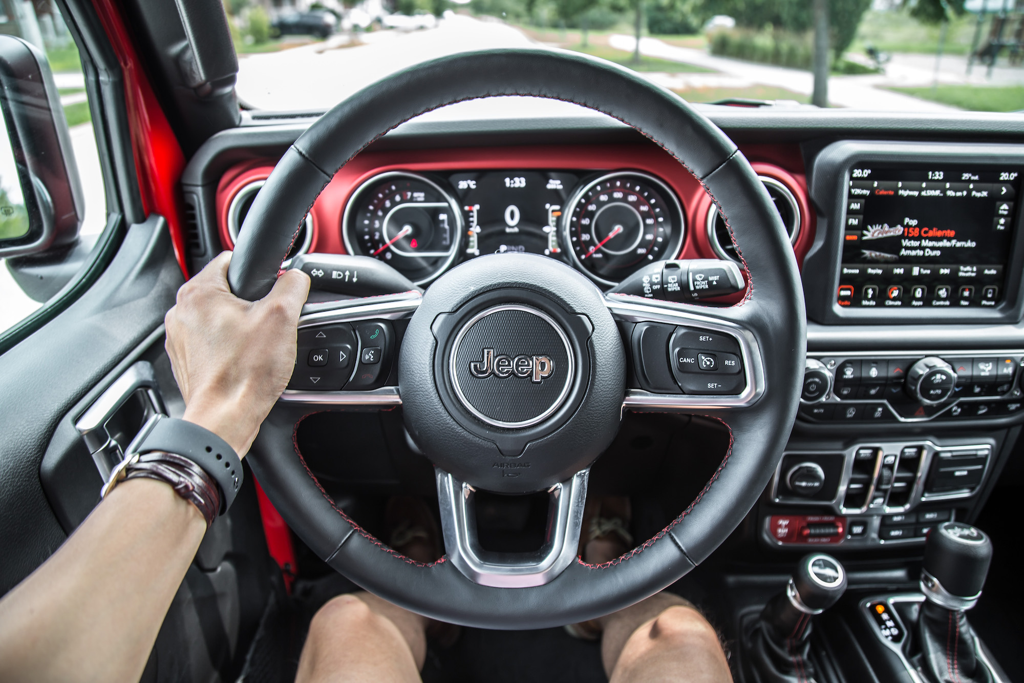 Our four-door fully-loaded Rubicon came equipped with the V6, so I can’t report on the turbo-four as of yet. Even though the naturally aspirated engine lacks low-end grunt, has a vague mid-range, and emits an uninspiring high-rpm wail, it is the linearity and predictability between the gas pedal and forward propulsion that keeps me content. It drives pretty much like every other Wrangler before it: capable and confident off the road, but shaky and anxious on the road. You do feel the gargantuan weight of the Wrangler hinder acceleration, and the V6 will chug and struggle to catch its breath when trying to overtake at triple digit speeds. Don’t kid yourself, the Wrangler is not a very quick SUV, and straight line races aren’t its forte, or its mission. We’re still waiting on news of a rumoured hybrid model, so stay tuned for that, and a 3.0-litre turbodiesel model is coming to Canada next year which promises to deliver a colossal 442 lb-ft of torque. Colour me excited.
