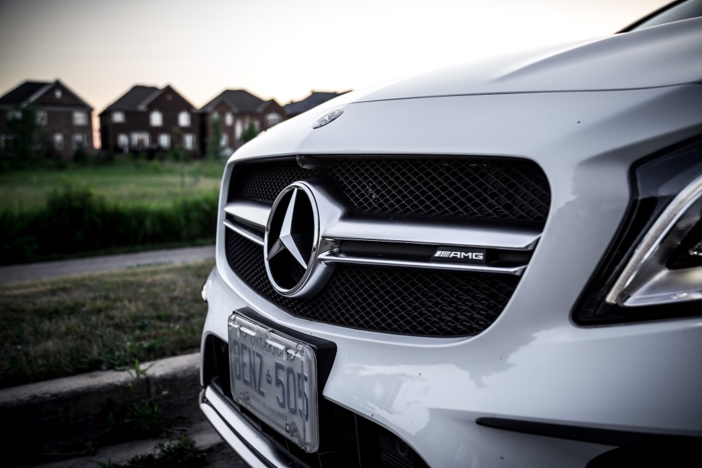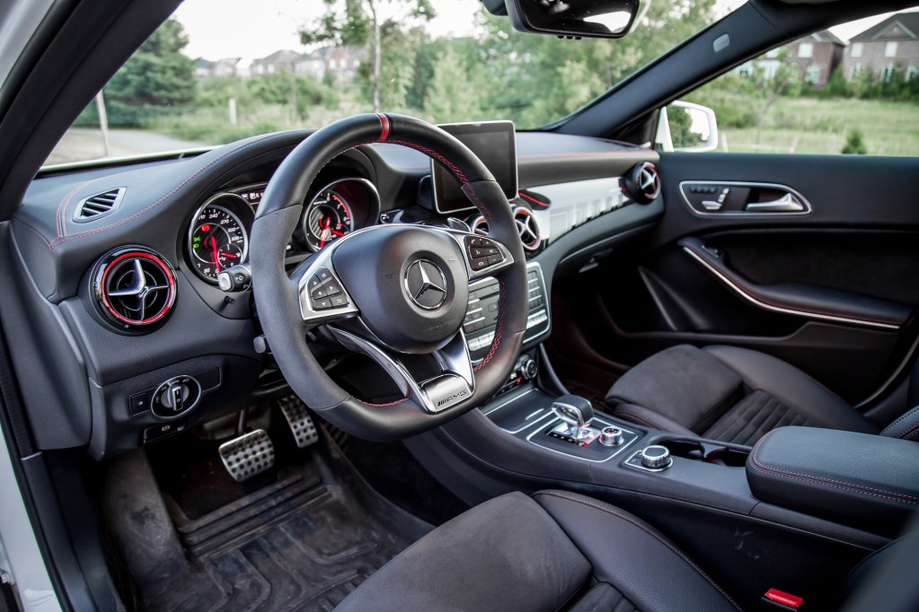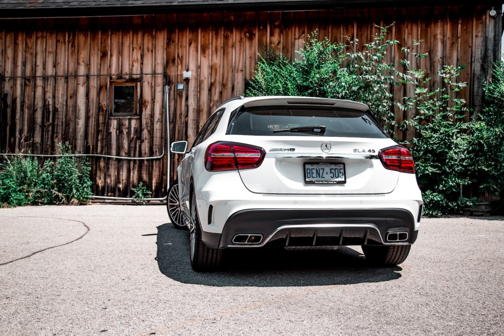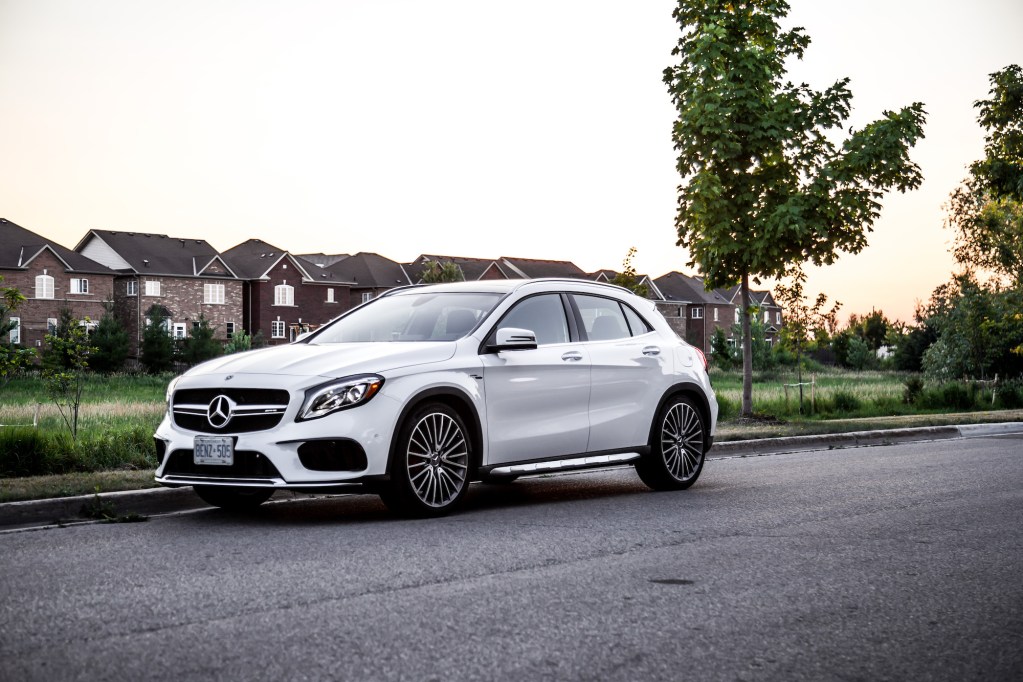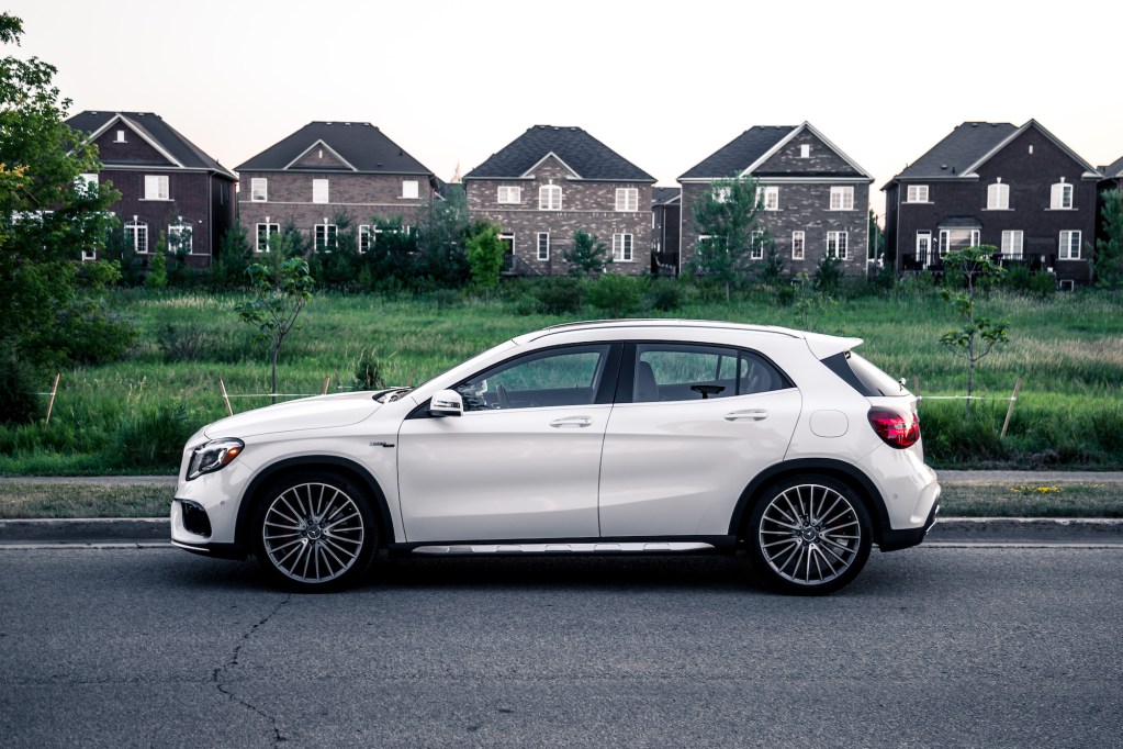 Our GLA example was not equipped with that juvenile rear spoiler for extra “downforce”, because your commute from Markham to Toronto really needs that. In fact, without it the GLA 45 looks eerily similar to the base GLA 250 without many clear giveaways, allowing it to anonymously blend into traffic. AMG specifics include the double lip front grill, quad exhausts, obvious badging, and a revised front and rear bumper, but these cues are hardly screaming in your face. Parked next to a Civic Type R, I’d even go so far as to call the GLA 45 a mature looking hatch.