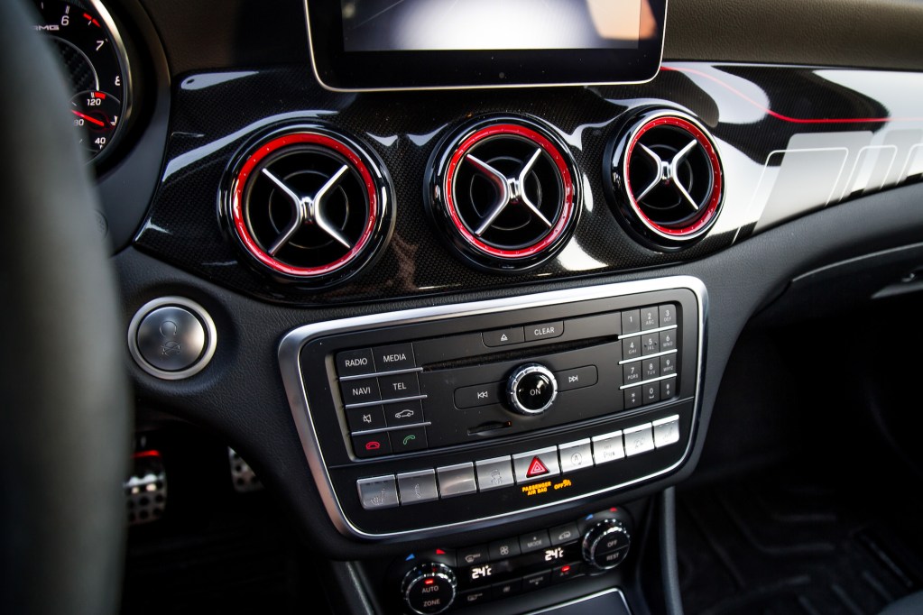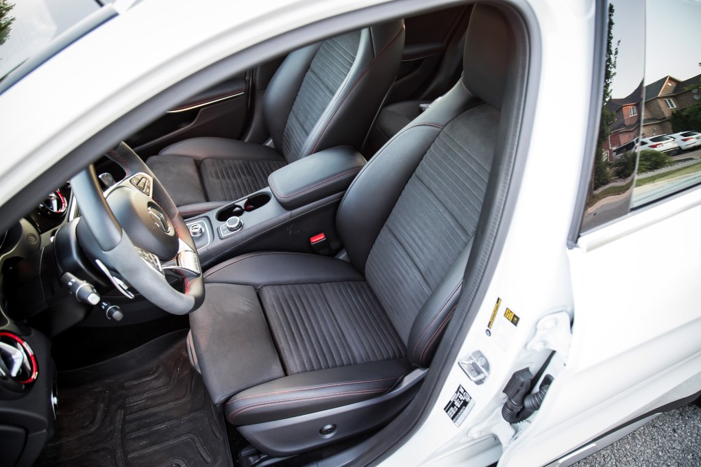 The interior gets beefed up with a new steering wheel and revised infotainment system. Red accents run rampant along the cabin with AMG graphics along the passenger side dash – to some it may be overkill but I’m sure dedicated Benz fans will adore every inch. The seats are still comfortable and well padded, and the seating position is excellent. I stand six-feet tall and even with the sunroof cutting away at some precious headroom, I fit perfectly if the seat is lowered right to the bottom. You can option the GLA with AMG Performance seats ($2,300) but I think these offer just the right balance of lumbar and thigh support.