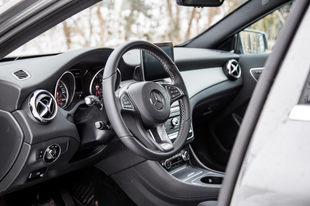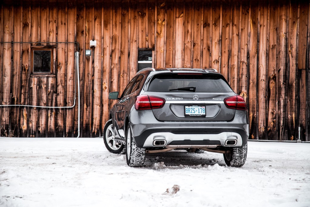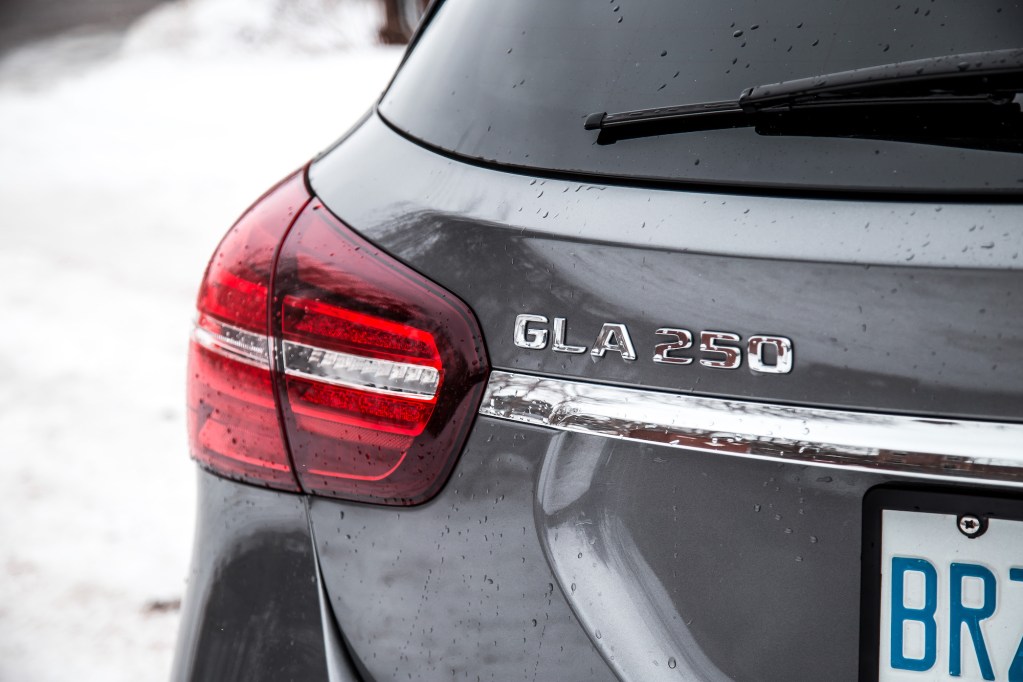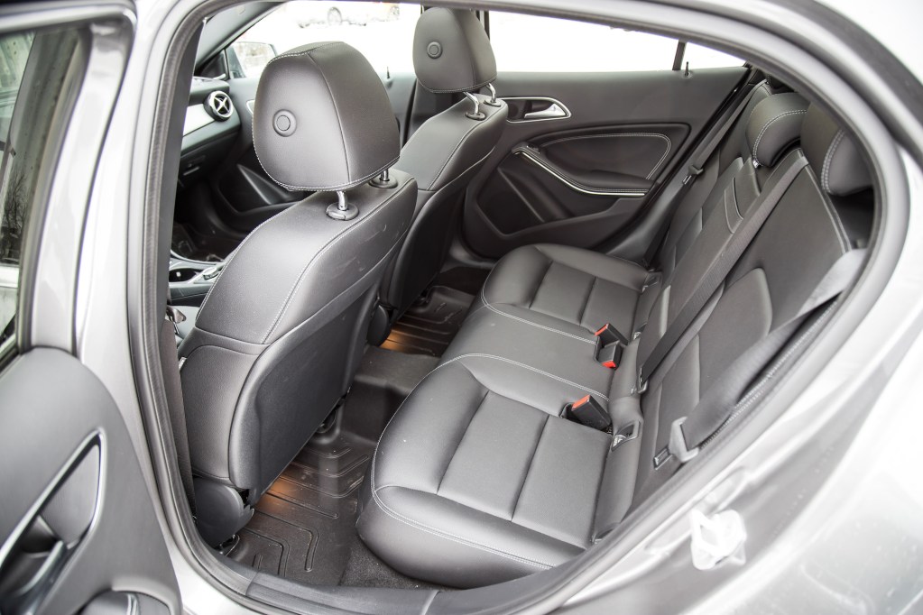 Again, the GLA was never the most spacious hatchback on the market, and it really shows when you try to sit in the back seats. Though not overly cramped, the seats are narrow and anyone over six feet tall might need to hunch their necks down a bit to fit under the headliner – especially if the sunroof is equipped, eating away at some precious headroom. This optional panoramic roof does assist in remedying the tight atmosphere back there, though. On the plus side, with the rear seats folded down, cargo room was more than impressive. After cleaning out my garage, I was able to fit two full sets of tires in there with an empty passenger seat to spare.