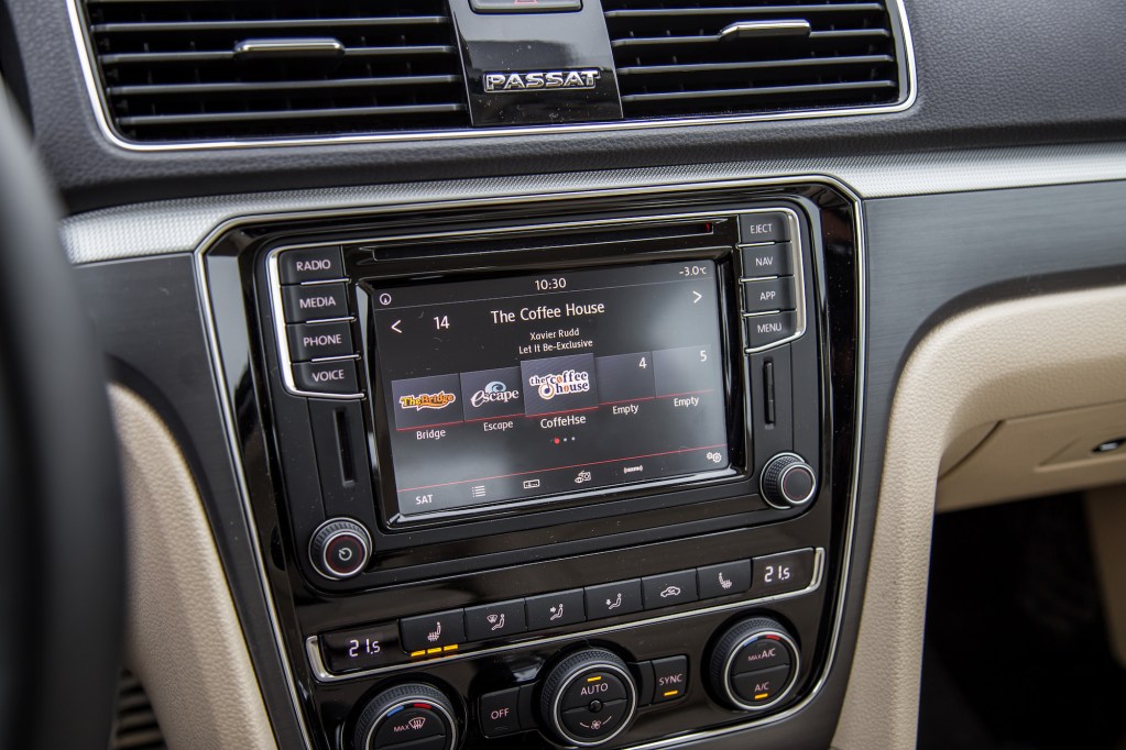 The interior tells a different story, one that shows its age rather well. Plasticky panels run rampant, and though I am usually fond of Volkswagen products and their cabin quality and refinement, this Passat left me disappointed with poor fit and finish, and sun visors that never stayed flush with the headliner. The 6-inch infotainment screen is nice and the unit is easy to use, but you cannot get the larger 8-inch screen from the Golf and Atlas. Happily, Android Auto and Apple CarPlay come standard, as well as a rear view camera, heated seats, and Bluetooth connectivity – these days these must-have features should be standard regardless.
