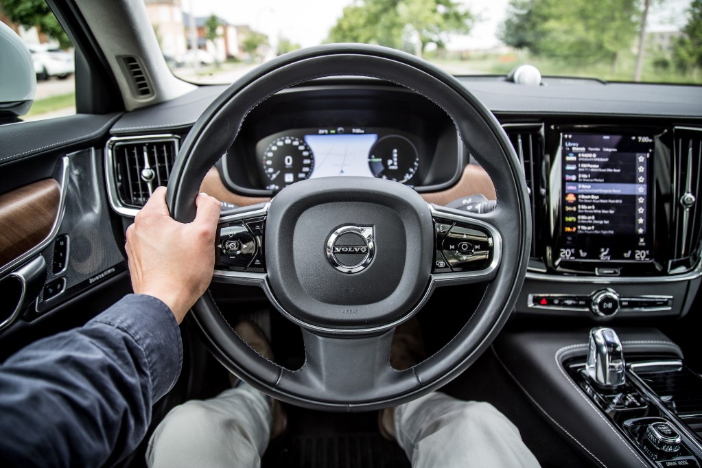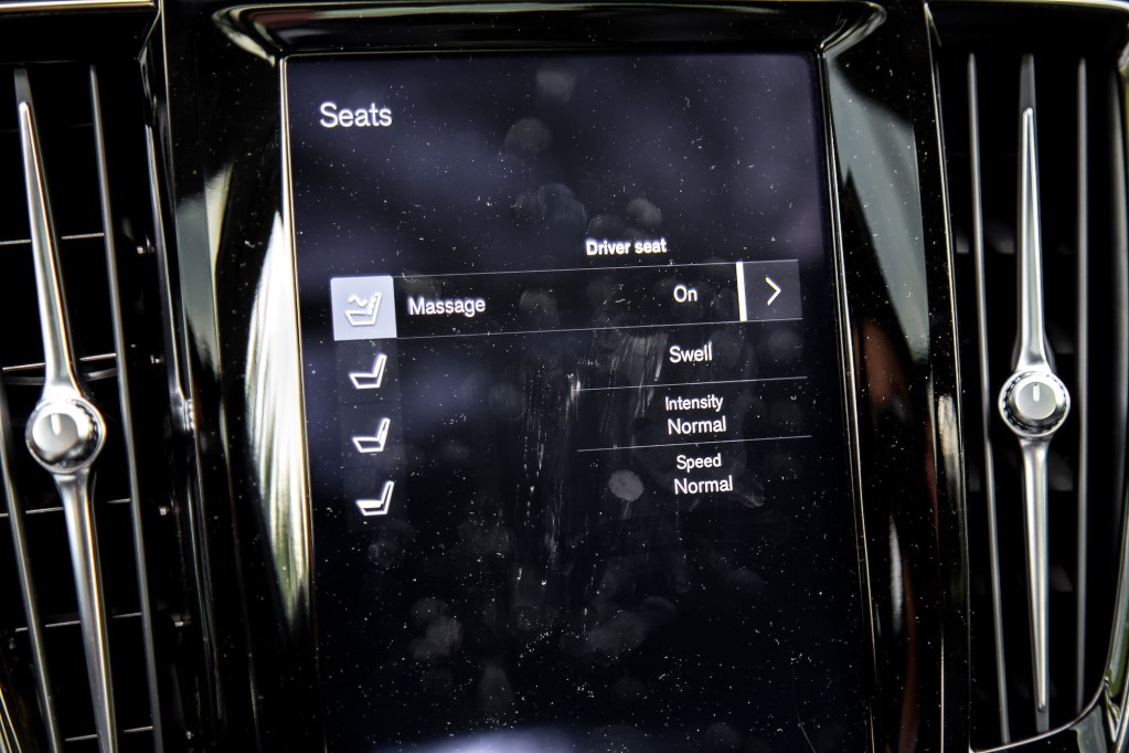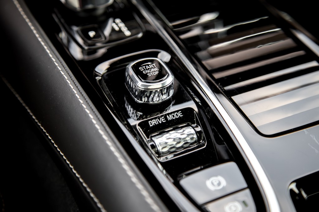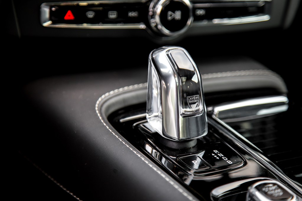 The seats envelop your body in comfort and massage, and can be lowered very close to the floor bed offering a low and sporty driving position if you so choose. Specific to top-end Volvo models is the crystal gear knob made by a Swedish company named Orrefors. The quarter-circle obelisk looks larger than it really is in photographs, and is quite miniature in person. It’s soft and nice to behold, and changes up how you shift into gear. Alongside the actual Park button, you tap the shifter up twice to hit Reverse, and tap the shifter down twice to hit Drive.