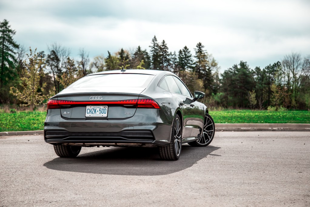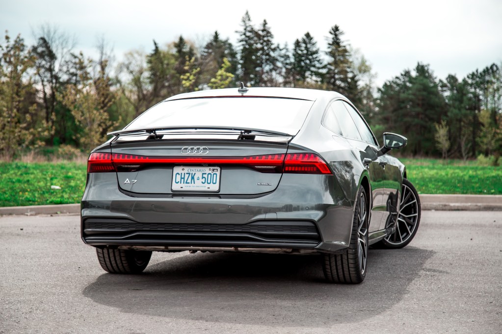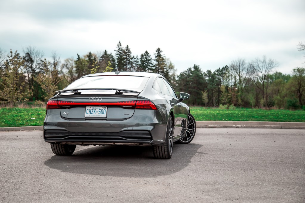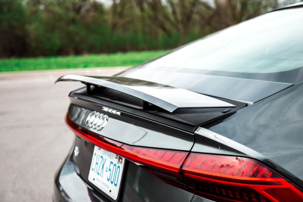 Bathing in sex appeal, the A7 houses a proven silhouette that tapers off into a serpentine tail-light bar extending the full width of the rear. There is a new central LED strip connecting thirteen light units on each side, individually and sequentially illuminating when unlocking the vehicle, creating a luminous peacock effect. Of note, when you hit the signal stalk, the lights will flash from side to side, much like the Ford Mustang and Chevrolet Corvette. Even more attention grabbing is the rear spoiler, which automatically kicks out at 120 km/h or when manually summoned, but you won’t find any visible exhaust pipes here. That’s because they’re hidden behind the rear bumper and cheekily pointed downwards, much like every other Audi sedan that doesn’t wear an S or RS badge.