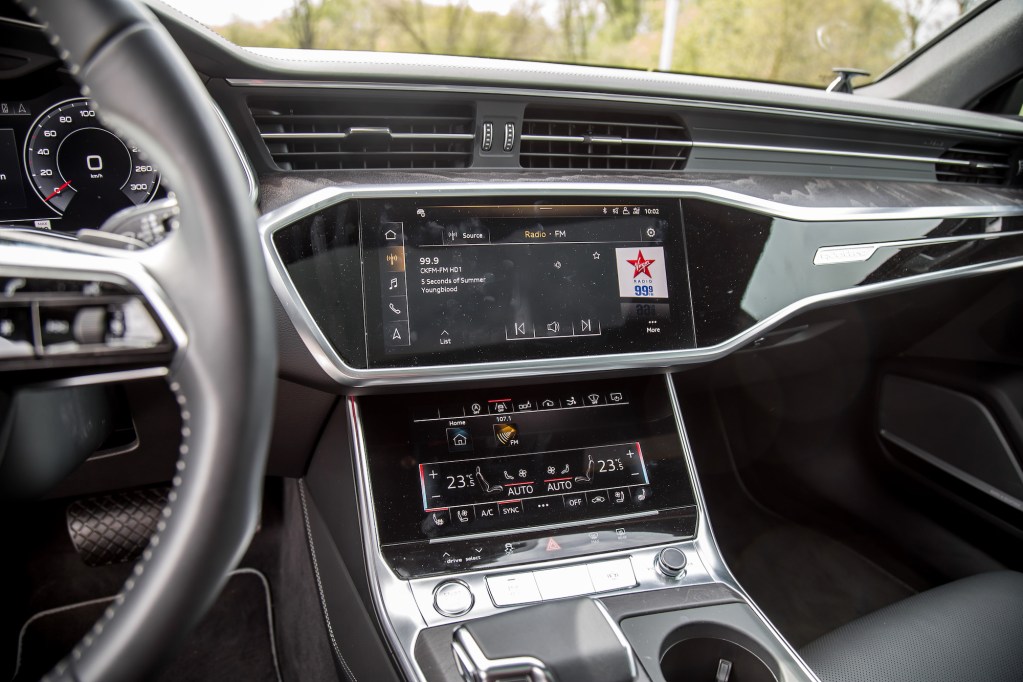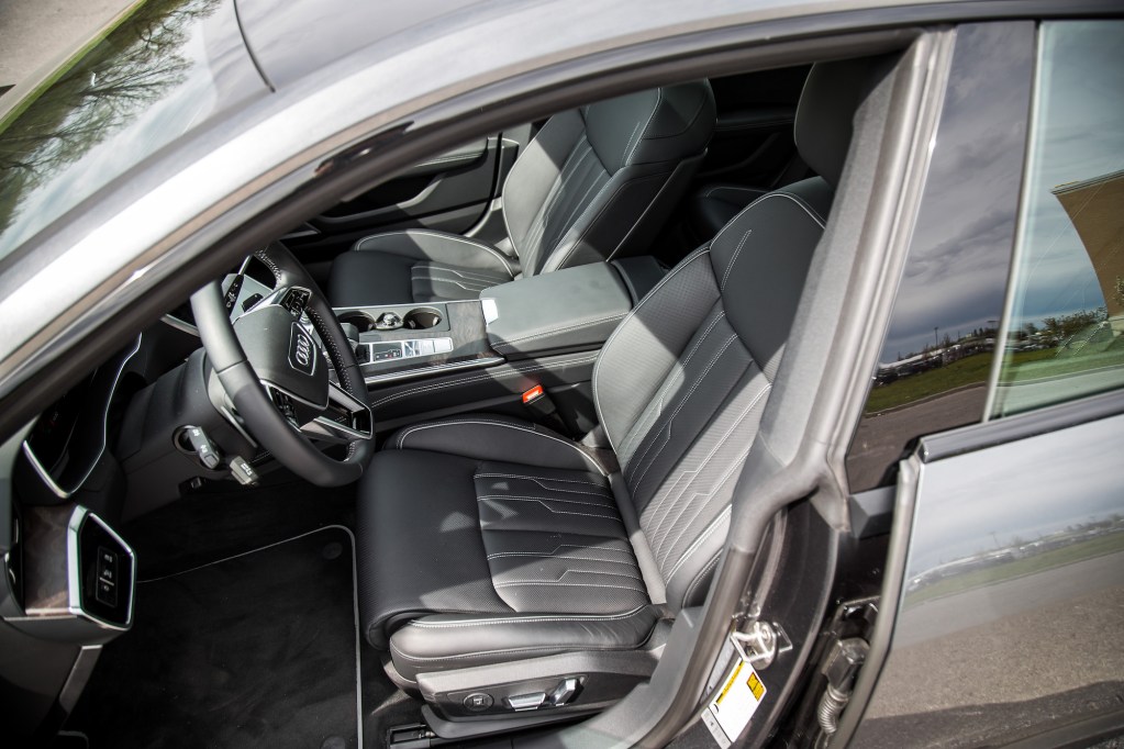 Replacing the supercharged unit from the outgoing A7 is a new 3.0-litre turbocharged V6 with an electric twist. Under the rear cargo floor is a 48-volt battery system that supplements the crankshaft with torque and additionally acts as the vehicle’s alternator and start/stop system. To be specific, it doesn’t exactly add power to the engine but it fills in the gaps when the turbo is busy spooling. Furthermore, this mild hybrid system allows the engine to shut off when coasting between 60 – 160 km/h and when coming to a stop, and ensures the start/stop transition to be nearly imperceptible. The result is an incredibly smooth powertrain where every mechanical instrument is tuned to the same frequency, delivering 335 hp and 369 lb-ft (44 lb-ft more than before) through a 7-speed dual clutch transmission, not the 8-speed torque converter that you will find in the RS5 and the upcoming S7. And of course, this being an Audi (bar the R8 RWS we drove last year), quattro all-wheel drive comes as standard fare.