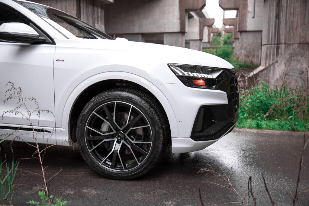The Q8 successfully mixes classic and modern Audi design features together, showcased by its imposing front grill and C-pillar based off the Audi Sport quattro rally car. You will find a fair deal of Bentayga and Urus influence from the rear quarters but much to our dismay, Audi has kept their signature fake exhaust outlets. Still, it’s a stunning SUV from any angle and in this white and black spec as shown in our photographs, the Q8 looks as if Hannibal Lecter dressed up as a stormtrooper for Halloween. The dropped roofline shrinks its visual footprint, as does the wider stance and frameless doors but the Q8 is quite a substantial size, especially when 22-inch shoes are housed within those massive arches.