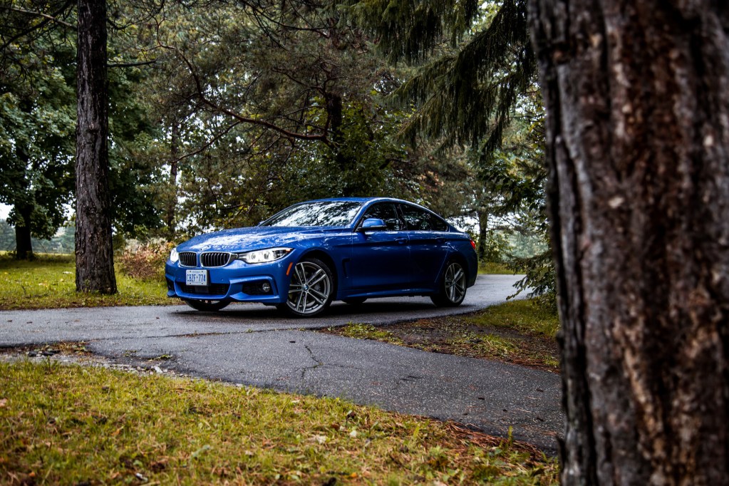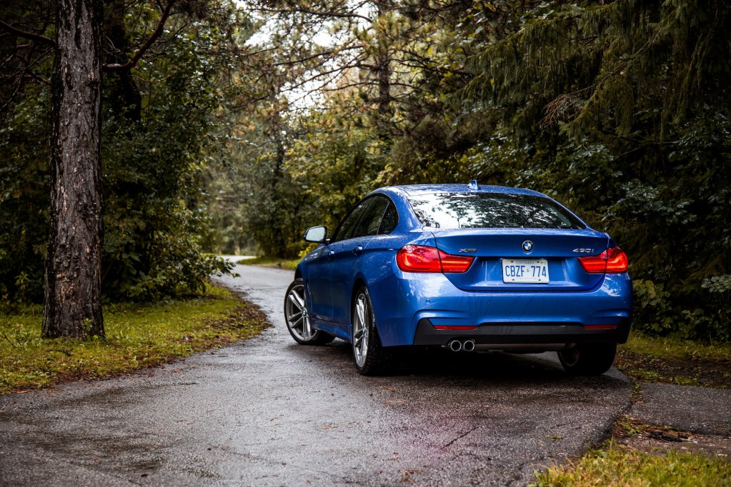 The 4 Series comes in two engine flavours, 430i and 440i, and each are available in three body styles: two-door coupe, four-door coupe, and cabriolet. Despite the fact that the BMW 4 Series has been on the market for six years now, this is actually my first time behind the wheel of the Gran Coupe (GC). Think of it like a 3 Series but with a raked back roofline, a hatchback liftgate, and a wider and sportier stance. There’s even a little “Gran Coupe” script perched on the C-pillar.