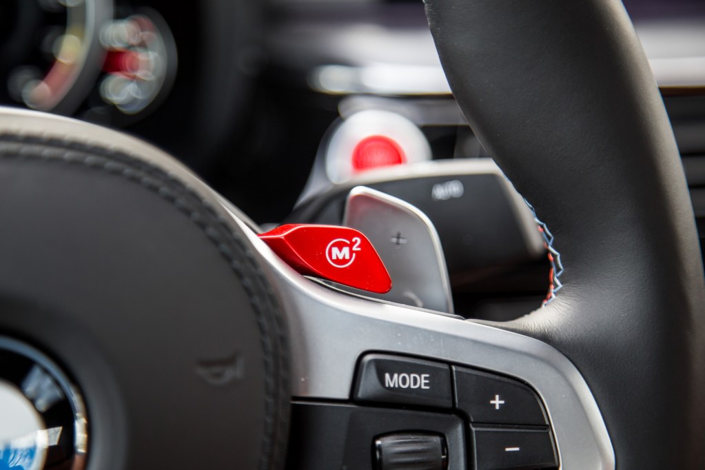 The M5 Competition rides 7mm lower, giving the sedan a sportier stance. It also comes equipped with specially designed engine mounts and anti-roll bars to keep the chassis tight and its innards from flying about. BMW has revised the transmission mapping for more aggressive shifting and increased front-axle negative camber too. Front and rear springs are 10% stiffer, which should result in a firmer ride and better steering response. Upgrades continue in the acoustic department, with a louder twin-pipe exhaust system that is flap-controlled via a dedicated button on the center console. One underrated feature on the M5: the exhaust will always stay in the same setting that you had it in previously, even after turning off the car. So there’s no need for that pre-ignition ritual of pushing every button. The customizable red M buttons on the steering wheel make things even more convenient.