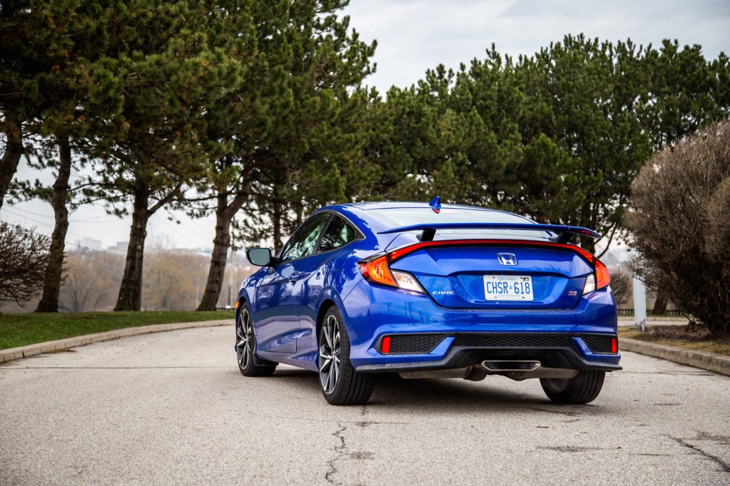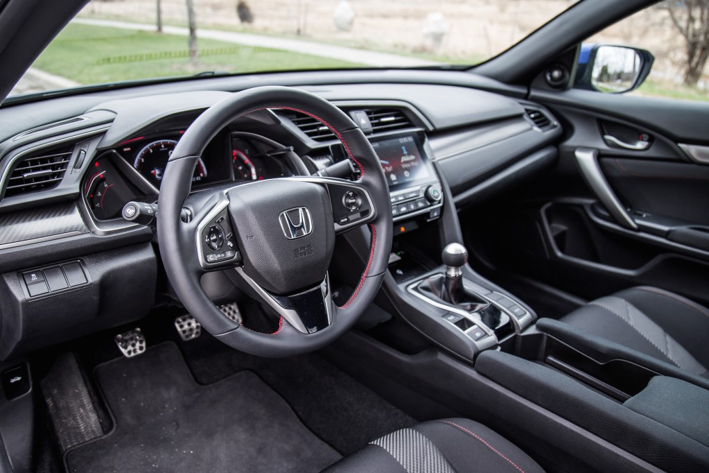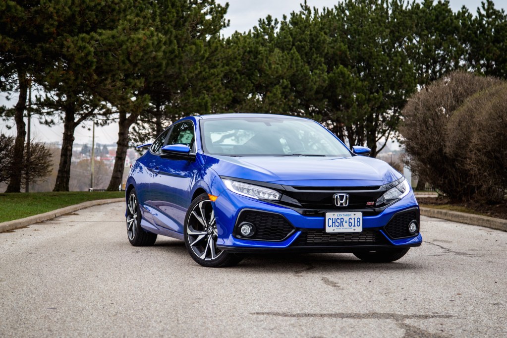 The Civic Si uses the same engine as the Civic EX-T and Touring trims, a 1.5-litre turbocharged inline-four, but the Si beefs it up with bigger turbos and better exhaust flow, leading to a power bump of 31 hp and 25 lb-ft. Total output is now 205 hp and 192 lb-ft. That power is routed through a short-throw six-speed manual (the only transmission choice available) to the front two wheels. The Civic Si also weighs less and is more rigid than the outgoing model. It’s fitted with a sports suspension, variable electric-powered steering rack, two-mode adaptive damper system, helical limited-slip differential, larger front brakes, and wider 18-inch tires. All that for $29,000? Adaptive dampers for heaven’s sakes – that’s a bargain in and of itself already.