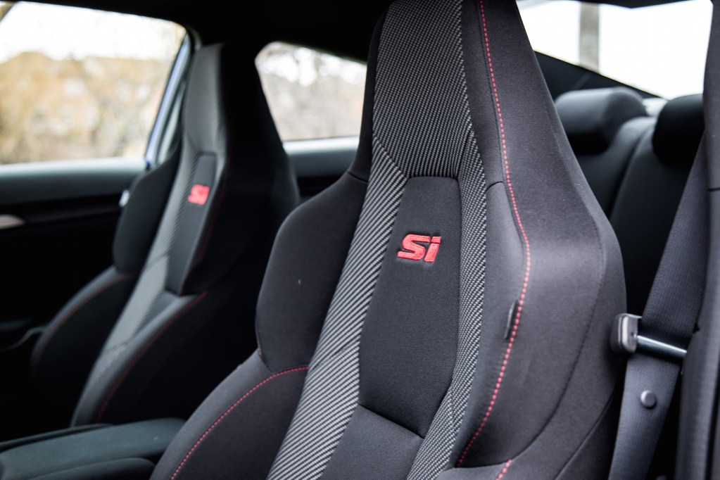On the bright side, the layout of controls and storage cubbies are ergonomic and accessible. Furthermore, Honda has listened to feedback and have ridden the interior of those awful haptic-touch buttons and installed actual hard buttons and volume dials on the center display. Still, it’s a step-down from the Golf GTI and its top-shelf materials and clever infotainment system. Headroom in the Si is lacking, mostly due to the lack of height adjustment on the front seats. I stand six-feet tall and there’s barely any wiggle room for my head, especially with that sunroof taking up much of the real estate.