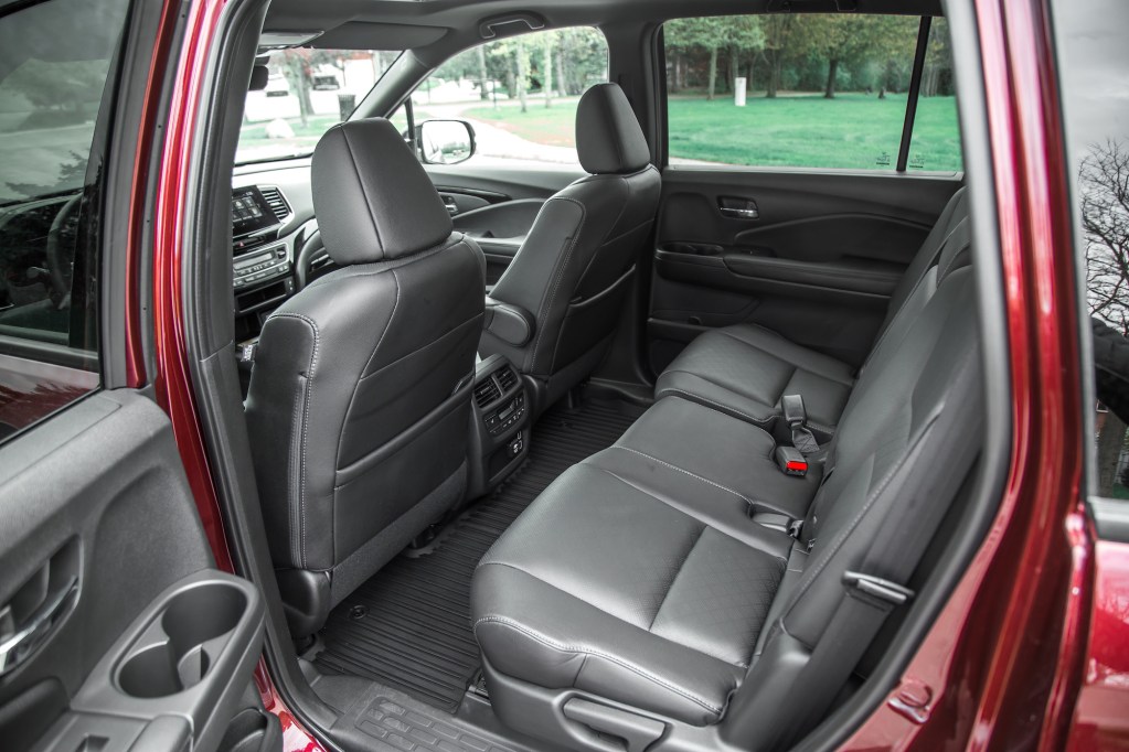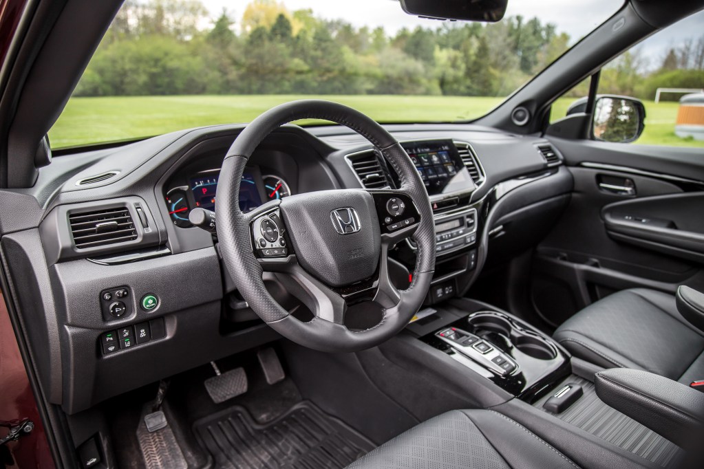 Much of the interior is carried over from the Pilot, meaning it lacks the garnish and luxury appointments of Honda’s latest entrants, but it more than makes up for that with a dedication to functionality. Hard grainy plastics and inexpensive leather grace every surface, similar to what you would find in a top-trim Civic or Accord, which only strengthens its authenticity as a genuine SUV that isn’t playing dress up. Buttons and dials are littered in ergonomic locations, and we applaud the dedicated buttons for the heated and ventilated seats, heated steering wheel, volume control, and rear-seat climate.