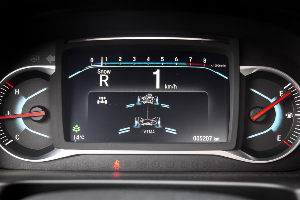 The Passport drives as expected: a smaller Pilot with a firmer suspension to balance out the decapitated rear end. It’s not nearly as fun as the Blazer when wrestling along sinuous roads, and the Passport is surprisingly not as well damped or comfortable either, but is still more than adequate at its intended mission as a family hauler. Whether the trunk and seats are full of cargo or occupants, the ride is seemingly unaffected. There are four driving modes to choose from as well: normal, snow, sand, and mud, each of which alter the throttle sensitivity, gearbox mapping, torque vectoring, and stability control for a more versatile attitude towards all-terrain driving, and the cartoonish graphics that are displayed when scrolling through the modes is an amusing Japanese touch.