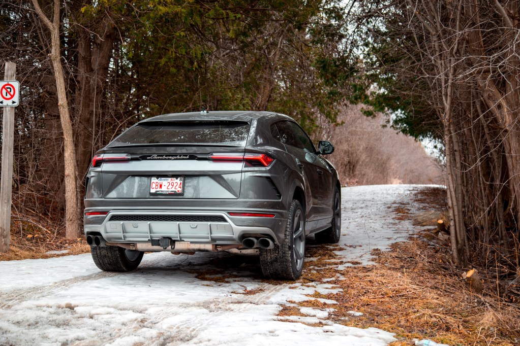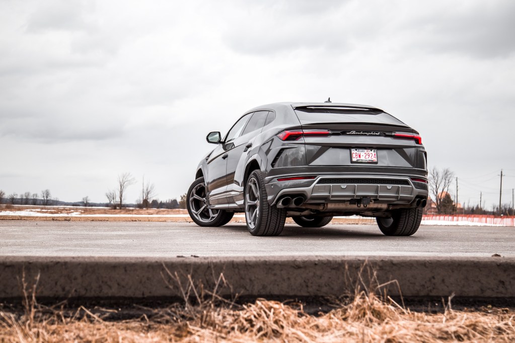 While it may catch your attention when parked next to domestic SUVs, the Urus clearly doesn’t have the same road presence as a Huracan. There are acute edges everywhere, more bends and curves than a Lexus RC F, and the rear quarters look eerily close to its more humble stablemates that lie on the same platform, the Audi Q8 and Porsche Cayenne Coupe. The short overhangs and raked back roofline also makes the Urus appear more like a spiky armadillo than a raging bull, and the understated Grigio Lynx paint on our test vehicle did well for camouflage.