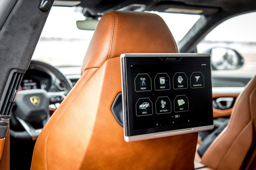 In the Urus, you sit much higher up than any other Lamborghini in production, which takes some adjustment if you’re coming from a Huracan. That’s because you can actually see out of this thing. It’s like going on a diet and actually being able to see your feet. Available in both four- and five-seater configurations, there is a generous amount of rear cabin space for my six-foot figure despite its raked back roofline and raised wheel arches. We had no issues sitting back there for long periods of time either.