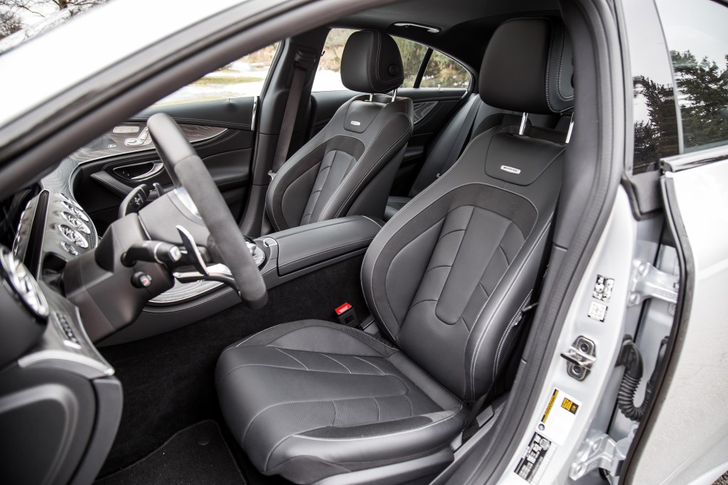 The CLS is overloaded with technology that has flowed down from the S-Class and E-Class. That includes the full gamut of ambient lighting, massaging seats, and an air freshener stowed away in the glovebox that pipes a nice scent through the fans. The piranha-shaped vents are a signature of Mercedes’ two- and four-door coupes, and because the CLS 53 is not a “full-blown” AMG, it doesn’t receive the eye-candy IWC analog clock on the center stack, just a standard one with a silver star logo.