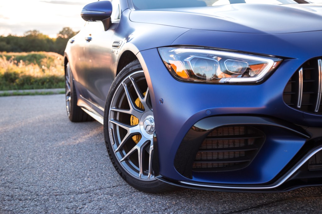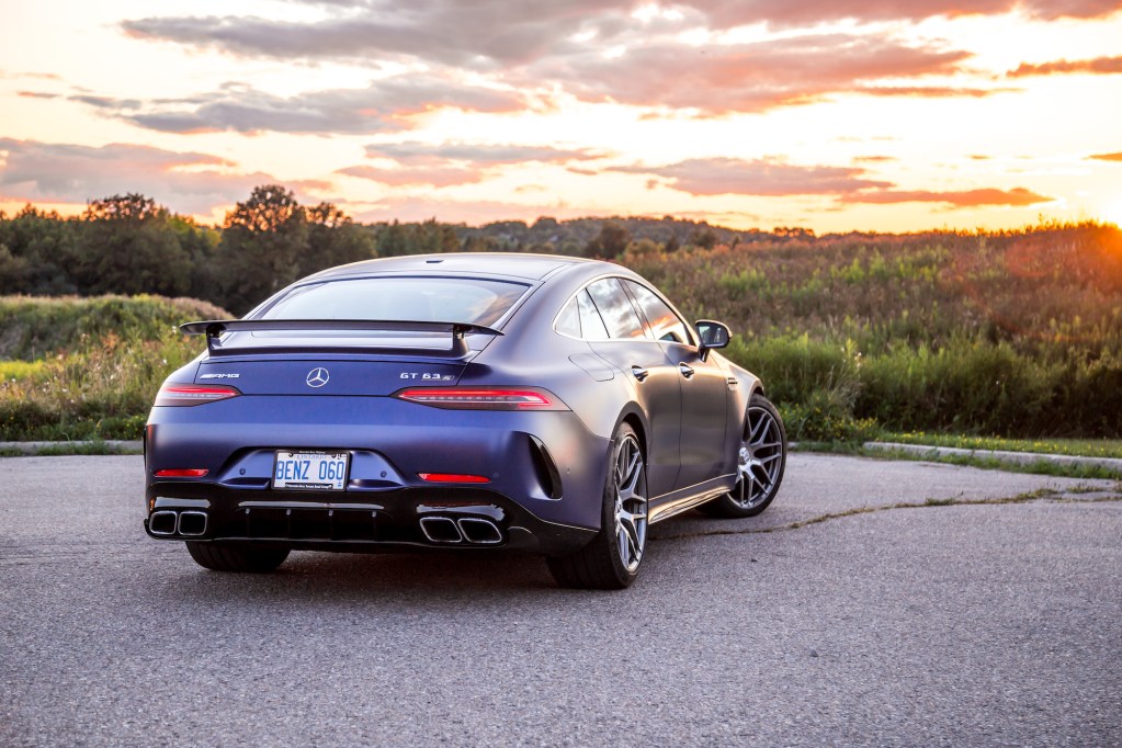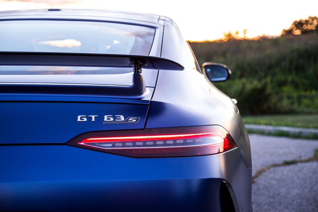 The exhaust noise sets the AMG apart from the Porsche as well. On wide open throttle, the GT 63 S unleashes a maelstrom of artillery fire out back, and while it may not sound as loud from the driver’s seat as the GT C, that’s only because the exhaust is so much further away with glass, metal, and leather drowning out the bellows. If you’re standing outside, it’s an entirely different story with thunderclaps and sonic booms at the command of the driver’s right foot. Debuting with the GT is also a new start-up ignition sequence that AMG is calling Emotion Start. By holding the left paddle shifter simultaneously with the start button, the exhaust lets out a spicier roar on start-up, almost like a cold start, perfect for flexing in the parking lot. Have a listen to our Exhaust Notes video below to hear it for yourself.