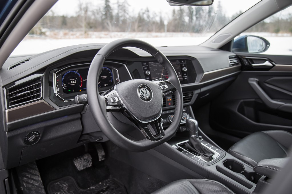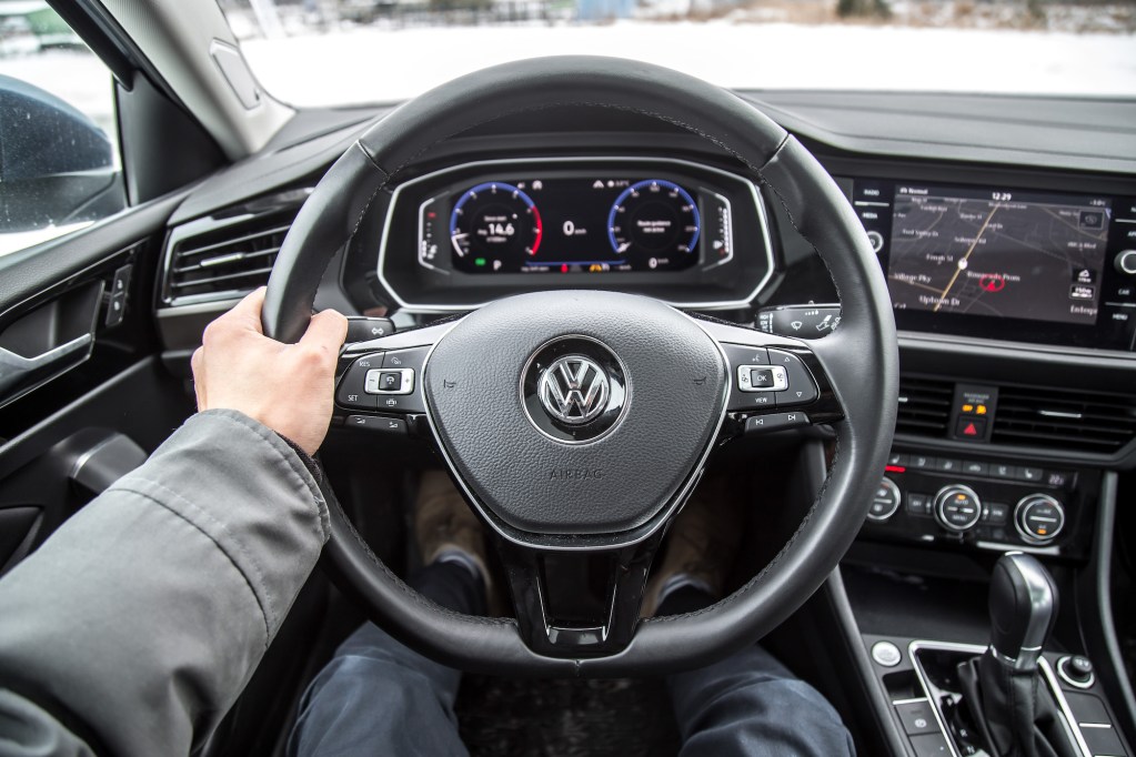 There’s nothing to write home about with the Jetta’s carried over 1.4-litre turbocharged inline-four engine but it does perform smoothly and dishes out 147 hp and 184 lb-ft of torque via a new 8-speed automatic transmission. The Honda Civic has more horsepower (174 hp) but slightly less torque (162 lb-ft). On the road, they both take off from idle with a similar amount of shove and it doesn’t translate to a large enough delta for us to prefer one over the other. Still, the only thing I would dock the Civic for is its bland CVT. The Jetta’s powerplant is quieter than the Civic’s and the 8-speed transmission keeps up well with unnoticeable gear shifts and prompt responses to throttle input. Of note, the Jetta also offers a six-speed manual transmission on every trim, and not just the base model. Kudos on that. There’s also a 2.0-litre 228-hp Jetta GLI ($31,695) on tap for those looking for that missing spice factor.