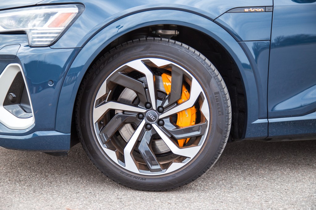 Forward acceleration in the e-tron is typical of all other 300-400 hp electric vehicles, and isn’t too far off of the Porsche Taycan 4S we tested earlier. It’s snappy, instant, and whiplashing right from the word go unless you have the driving mode set to Comfort or Efficient, where it reacts more sluggishly. And even with the e-tron’s significant curb weight (it’s heavier than the Rolls-Royce Ghost SWB), the sheer accessibility of the torque is applaudable and ends up feeling light on its feet. The brakes are also praiseworthy, linear enough that you can’t tell it apart from conventional hydraulic brakes, and assist in lowering the learning curve for those transitioning over into EV ownership.