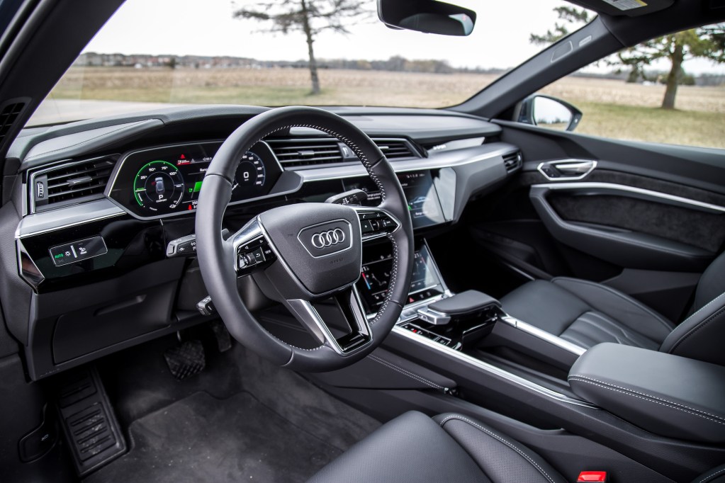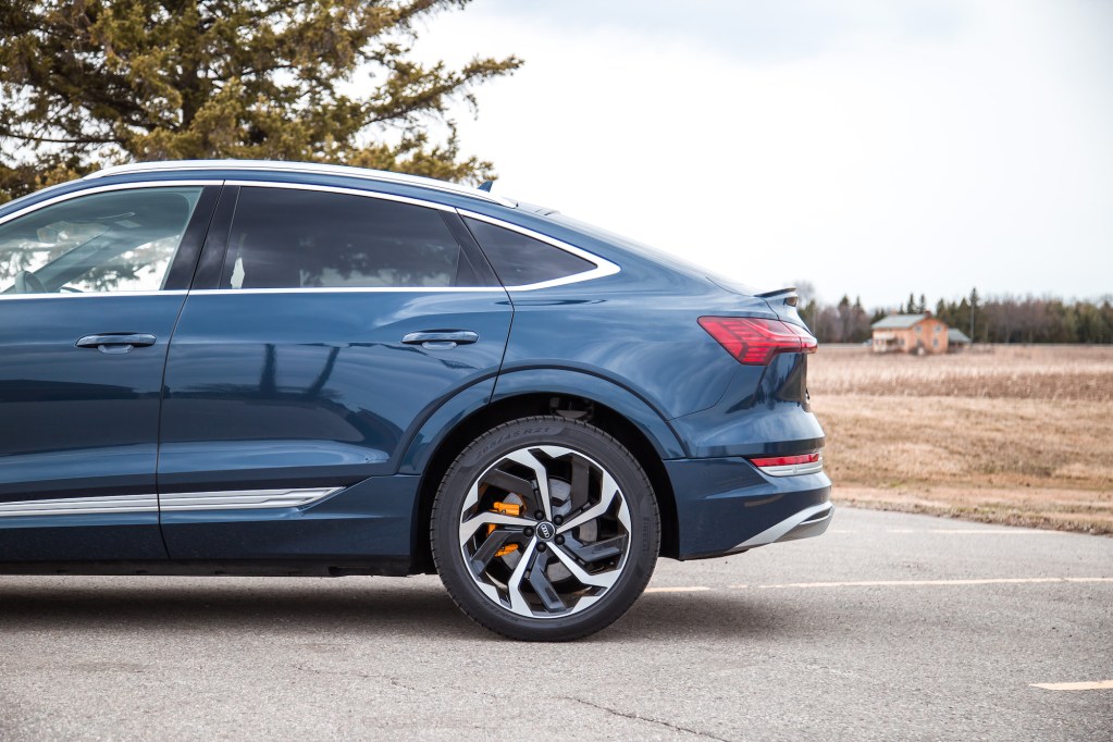 Audi claims a range of 351 km, which is oddly 6 km less than the e-tron SUV, and less than the rivaling Jaguar I-Pace (377 km), Polestar 2 (375 km), and Tesla Model Y (488 – 525 km), but claims and real-world range tend to be different. The full array of charging options are available, from a standard household 12V outlet, to the popular 50 kWh charger that takes about 9 hours for a full charge. The 150 kWh DC fast chargers will do the job even quicker, from 0-80% in 30 minutes, but are rare sightings across Ontario.