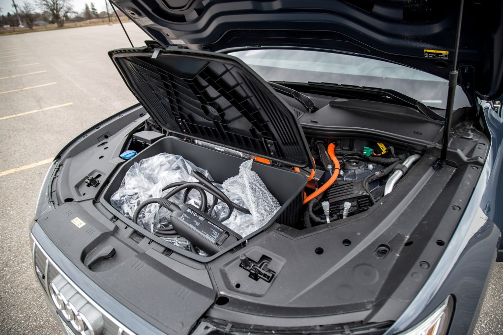For $600, Audi will add a second charging port (Level 1 and 2 AC charging only) on the passenger side of the e-tron, so you never have to worry about parking the correct way on your driveway for optimal access, and both have an electronically-operated cover that opens and closes with the push of a button. We couldn’t help but wonder what would happen if you plugged in separate chargers into both ports – would it explode from EV greatness? We didn’t have the electric cojones to find out.