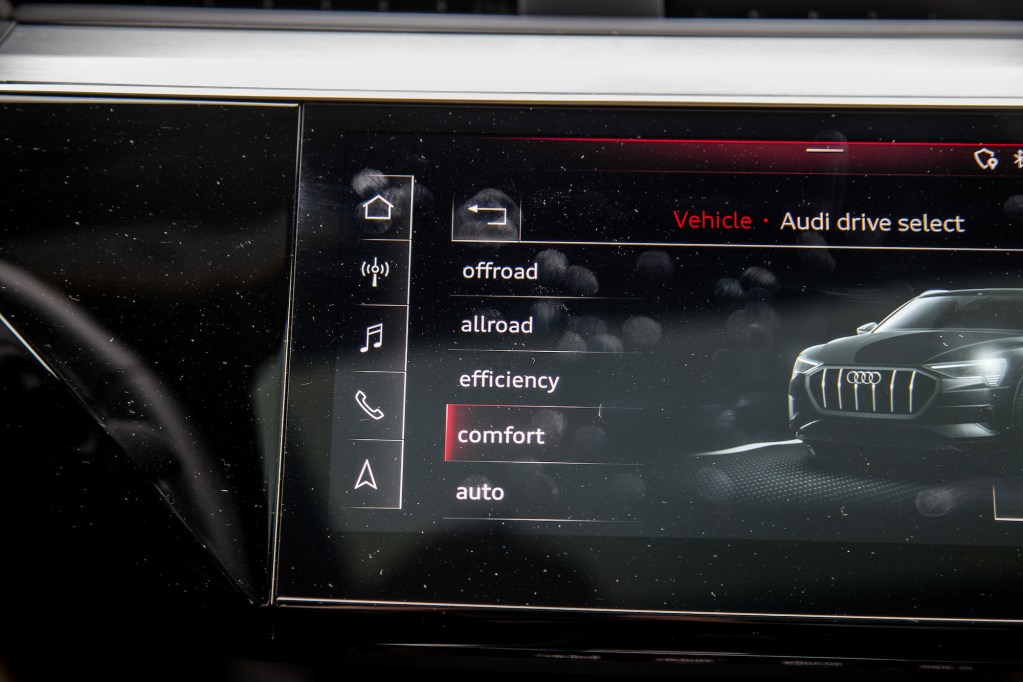 The proliferation of digital real estate will surely split opinions but Audi’s new dual-screen infotainment system works well, and we’ve experienced it before in the Audi A7 and Lamborghini Urus. The screens offer an adjustable amount of haptic and audio feedback, and strongly vibrates to confirm each selection. That leaves less ambiguity on the table that plagues many other vague feeling touchscreens, but it doesn’t address the issue of hunting for the intended button and visually confirming you hit the right prompt – not easy when you’re trying to keep all eyes on the road.