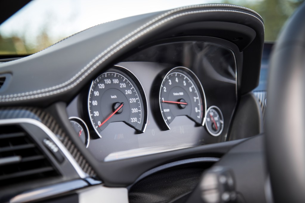 The model we drove is in fact the heaviest way you can spec your M4: topless and with a dual-clutch transmission. In all, it adds 245 kg over the base M4 Coupe with a manual. Ours was also spec’d with the Competition package, raising the engine’s output from 425 hp to 444 hp (torque remains unchanged), amounting to a faster 0-100 km/h sprint by one-tenths of a second. It further adds an adaptive suspension, a re-tuned stability control system, upgraded suspension with new anti-roll bars, springs, and dampers, a louder titanium exhaust, and fancy-spoked 20-inch wheels wrapped in Michelin Pilot Super Sport rubber.