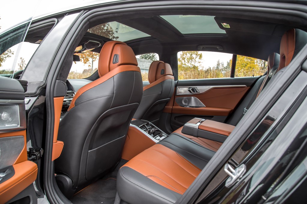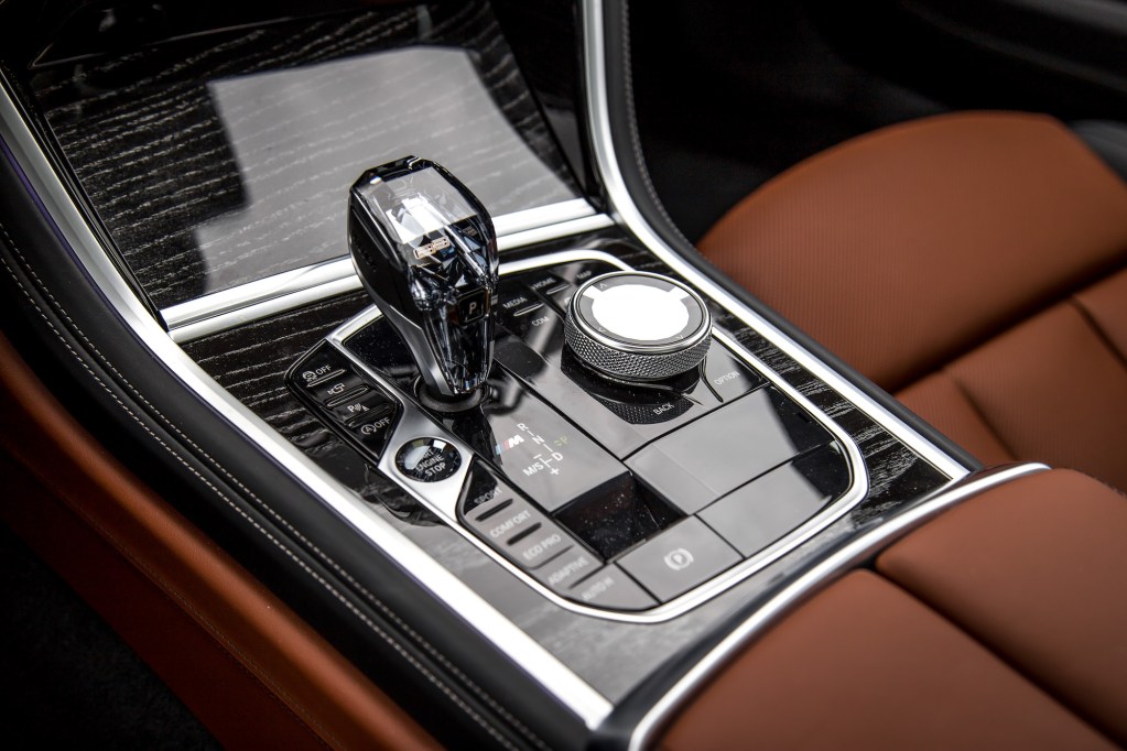 Technically there are five available seats, but do you really want to put someone in that middle seat without anywhere for them to put their feet? That rear center console with dedicated buttons for heating and ventilation will not make things easy for them. Squeezing two passengers back there is much more manageable, though the sloping roofline will force six-footers to slouch their back to avoid a hair redo. Legroom is pretty good and there is even a dedicated sunroof for the rear compartment. Much like the 7 Series, there are electronically operated rear and side sunshades, with only the rear one operable from the front seats. That said, it does lack some features found in BMW’s halo sedan, like two-panel adjustable backrests and massaging seats. On the bright side, the 8 Series gets that swanky crystal gear shifter that you won’t find in other BMW sedans.