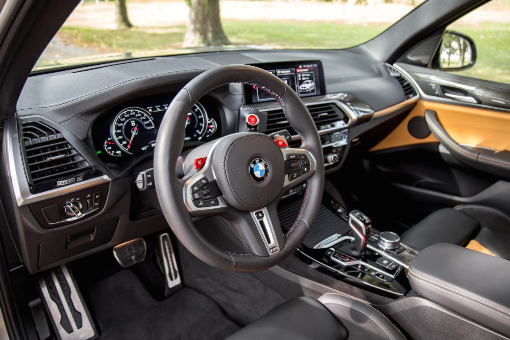 Both the X3 M and X4 M receive the same mode of propulsion: a 3.0-litre twin-turbo inline-six good for 473 hp and 442 lb-ft of torque. Courtesy of more boost and a slightly more efficient exhaust, Competition models get 30 more horsepower for a total of 503 hp. BMW says this new S58 unit is their most powerful straight-six engine ever produced, and judging by how BMW tends to underrate their vehicle outputs, this is going to be one fiery sleigh. Rumoured to underpin the next generation M3, the S58 here is mated through a silky 8-speed ZF transmission and sends power to all four wheels via a rear-biased all-wheel drive system, though you can’t disconnect the front-axle for some tire burning shenanigans like in the M5. BMW also added stiffer springs, retuned adaptive dampers, stronger brakes, a sports exhaust, and beefier alloy wheels. Like other M models, the X3 M comes with adjustable modes for the steering, suspension, and engine response. There is even a dedicated exhaust button like the M5 that can close the valves for a quieter cruise through the neighbourhood, and two shiny red M buttons flanking the steering wheel that drivers can customize to any setting they choose, working much like the shortcut dials on the new Porsches and AMGs.