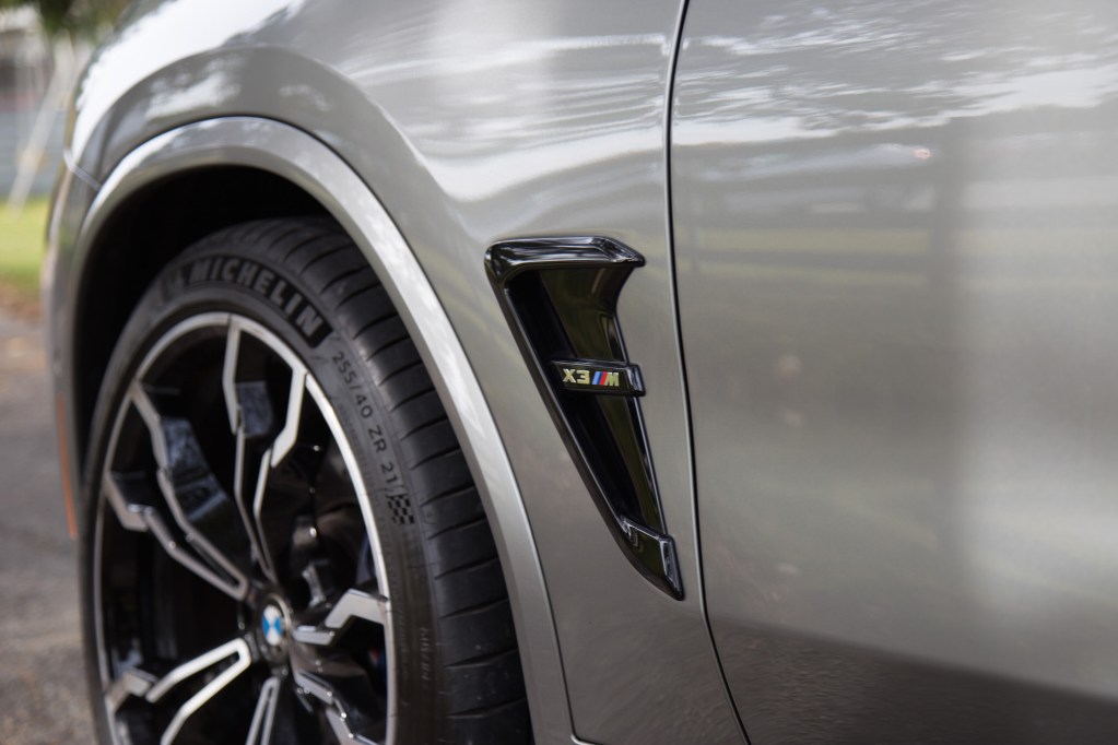 On the outside and much like its competitors, it can be terribly difficult differentiating the X3 M from its lower X3 compatriots. That said, there are a few standout features, like the quad exhausts, signature C-shaped side mirrors, flared up fender vents, exclusive Donington Grey and Toronto Red paint colours, and of course, the liberal slab of M badges. Other than that, it’s fairly standard X3 fare. The interior follows a similar mojo, and retains what makes the X3 such an ergonomic and soundly designed affair, just with a bit of sporting M flair on the exquisitely quilted two-tone leather seats, beefy steering wheel, M coloured seat belts, unique digital displays, and a new gear shifter that operates much like the current M3 example but now with an actual Park button.