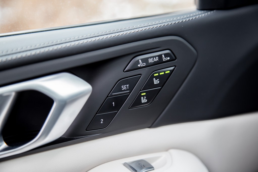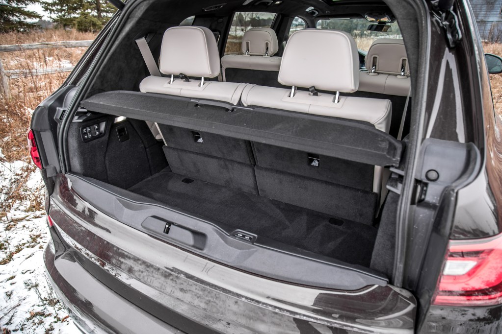 The interior is well-appointed with first-class materials and glass elements on the gear shifter and rotary dial surround. It’s everything you would expect in a 7 Series, put into SUV form. Keeping with a functional theme, everything is at the driver’s fingertips. Want to control the passenger seat? You got it. What about the rear seats? That too. Choice of fragrance? Check. Side window blinds? There’s a button for that too. The X7 ensures you never have to leave your throne when unloading this luxuriously effective people hauler. While the design is not as simplistic as the touchscreen-dependent Audi Q7 or as ritzy as the Mercedes GLS, functionality remains the top goal. As such, two 12.3-inch digital screens sit on the dashboard, replete with hard buttons to control every function. BMW’s lauded eight programmable shortcut buttons are back, and they join the optional Sky Lounge panoramic sunroof that illuminates at night to simulate a starlit sky – think of it like a discount Rolls-Royce Starlight Headliner.