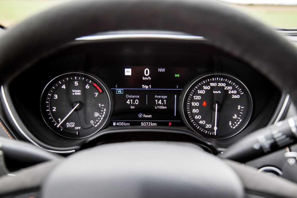 While not a terribly bright or characterfully designed cabin, the interior remains functional and ergonomically sound. There’s not much going for it in terms of cabin pizzazz, and is frankly quite bland in comparison to its Teutonic offerings, but there are some standout features like crisp analog gauges and a substantial steering wheel that feels wonderful to grip. It’s available in suede too. I’m generally not a fan of suede in road cars but this one is exceptionally warm, soft, and fuzzy when the heated wheel function is switched on.