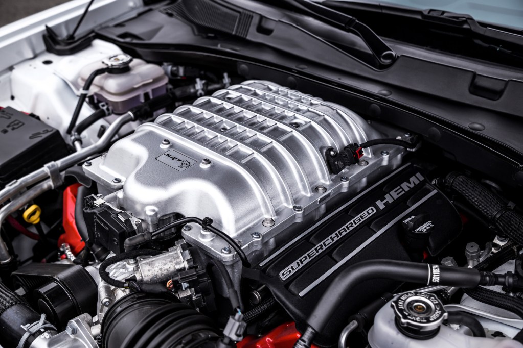 Digging deeper into the Hellcat’s toolbox reveals a few more goodies. It now receives a feature called Torque Reserve, which closes a bypass valve to prefill the supercharger and manages fuel flow to balance engine rpm and torque. This generates a reserve of torque that is delivered upon acceleration from a standing stop. In addition, a feature called Race Cooldown keeps cooling the supercharger after the engine is shut off by running the intercooler pump and radiator fan, all in an effort to preserve internals and keep the mechanicals in tip top shape.