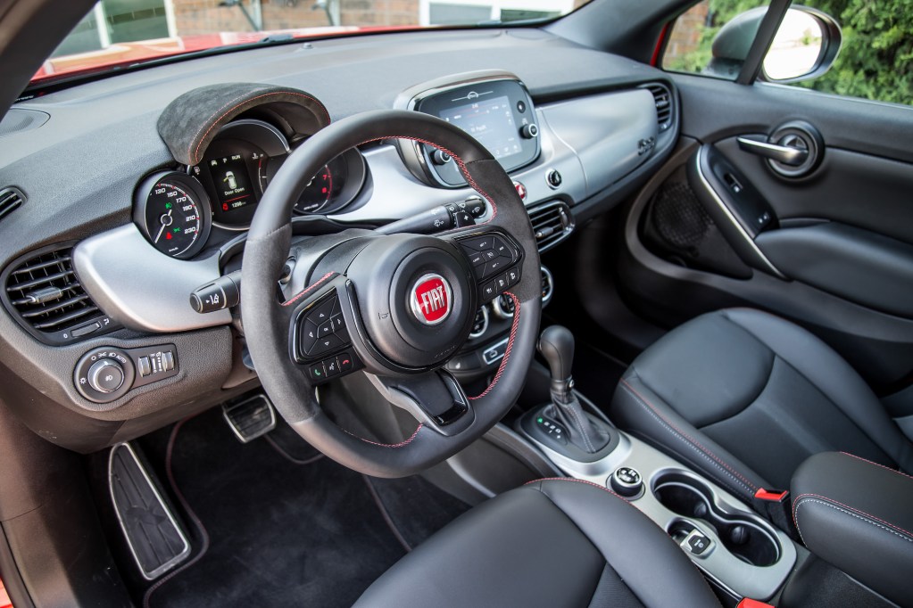 The suede steering wheel is a nice touch and unique in its segment. It’s a pretty package both inside and out, and unlike the smaller 500, the driving position here is excellent. It doesn’t force taller drivers to sit awkwardly forward, and there’s a great deal of headroom even for my six-foot figure. That’s helped by the fact that ours didn’t have the optional sunroof cutting into the real estate. We didn’t have the optional BeatsAudio sound system either, but the base speakers sounded just fine to our ears. As charming as it may be, the Fiat still lacks the interior refinement expected these days from a $30-40,000 SUV, especially when you’ve seen what Mazda has been up to with the CX-30. Panels aren’t always flush with each other, and it lacks that sturdy and durable feel that you would even find in today’s Hyundais and Kias.