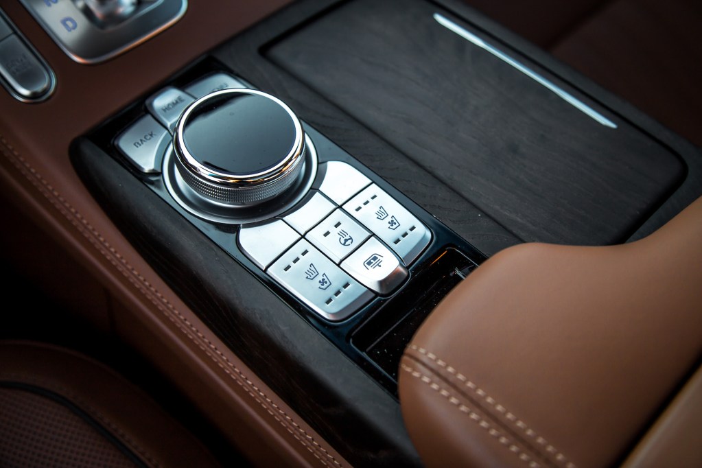 The back seats are where you want to spend the majority of your time. While not common to get chauffeured around in North America, you do want to experience the rear accommodations, like the activated Rest Mode that fully reclines the seat back, and pushes the front seat all the way forward so you can stretch your legs forward. The center armrest is chock full of media controls and dials as well, and can be folded upwards to make room for a fifth passenger. You can tell that in an effort to keep the price from reaching stratospheric heights, Genesis skimped out on a few items. Like how the only wheel size available are 19-inches, and without optional 20s or 21s, the fat tire wall doesn’t look too appealing close up. The ride quality probably fairs better because of it, and while the lacy wheels look spectacular in photos, in person, the spokes and center cap lack the shine and polish to give off an upscale look. Other places missed out include the plasticky rear view mirror, the chunky door lock knobs, and the lack of a rear sunroof, rear entertainment screens, and massaging seats. The keyfob is low-rent plastic (even new Kias have nicer leather-wrapped ones), and only one USB port graces the front cabin, but a wireless charging pad and two 12V sockets do remedy connectivity concerns. The G90 does have some standout features though, including soft closing doors, and even electronically operated rear and side sunshades, all of which can be controlled from the driver’s seat.