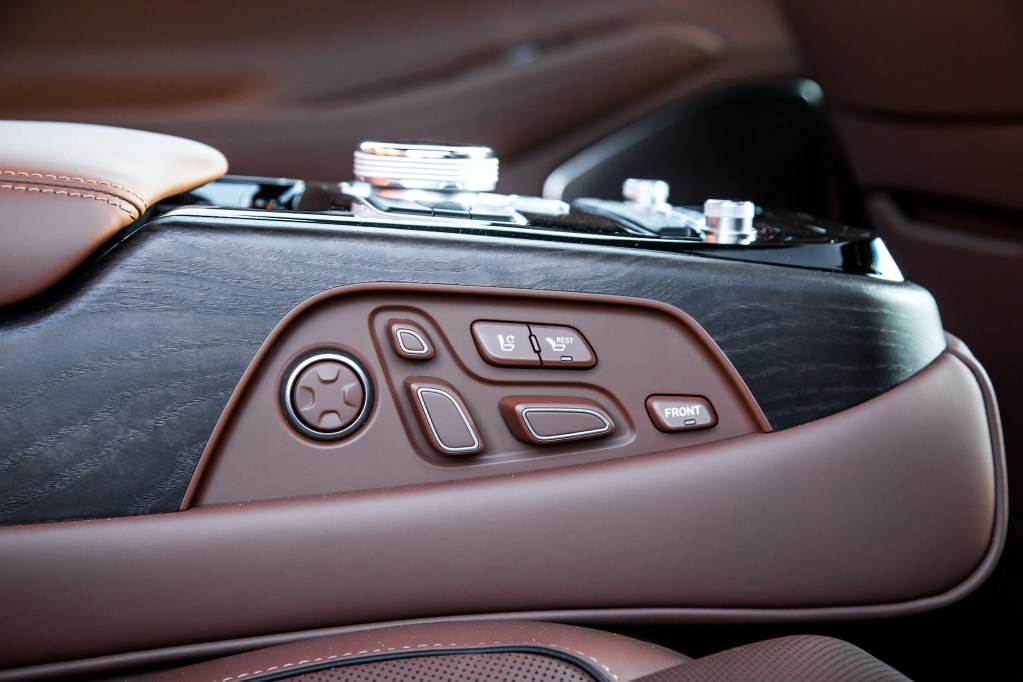 The G90 now has the road presence, and though the interior hasn’t really changed from the outgoing model, there’s a lot to like. The cabin is wrapped head to toe with soft leather, and can be optioned with an exquisite caramel-coloured leather dubbed Havana Brown, that covers the majority of the cabin surfaces, including the thin-rimmed steering wheel that hosts convincingly premium feeling knobs and toggles. In fact, this spec reminds me a lot of the Lexus LC 500 cabin with the beautiful brown interior spec. The 12.3-inch infotainment screen is a dressed up version of Hyundai’s unit, but is nevertheless a breeze to use, and offers both touchscreen capabilities as well as the tried and true rotary dial. Flanked underneath that dial is an easy access panel for the heated steering wheel, and heated and ventilated seat functions – not having to navigate into the menu like in the S-Class saves us a solid few seconds on every vehicle start up.