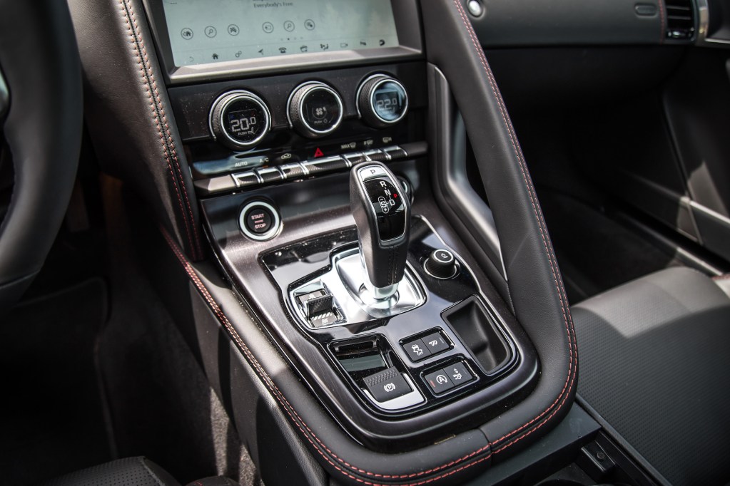 Much of that comes down to the massive dials flanking each side that control the HVAC temperature, and heated and ventilated seats. There is no confusion as to which dial controls what. Everything is clearly labeled and ergonomically placed. In addition, the center console layout is by far one of the best in the sports car segment. Everything is within arm’s reach, and there is a dedicated volume dial right next to the fighter pilot-inspired gear shifter. The exhaust and spoiler buttons sit right below them. Yet, despite the exhaustive list of standard features, Jaguar nickels and dimes for even the most minor of creature comforts, like $620 for passive keyless entry, $510 for a powered tailgate, and $210 for an auto-dimming door mirror. Still, if you jump camp and take a look at the rivaling Porsche 718 Cayman, their case of price tag edema is even worse.
