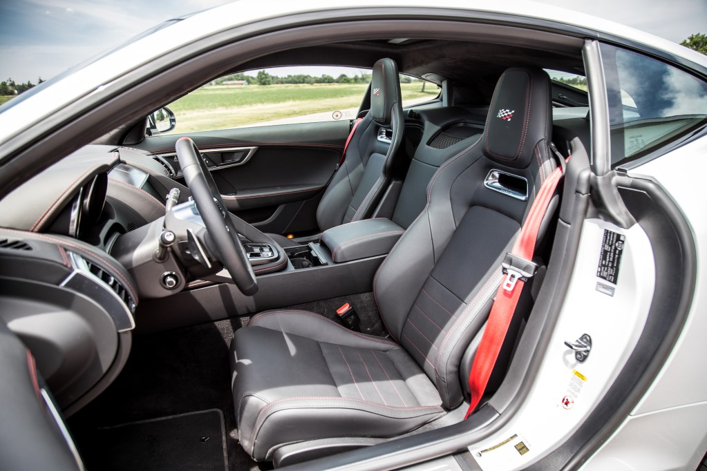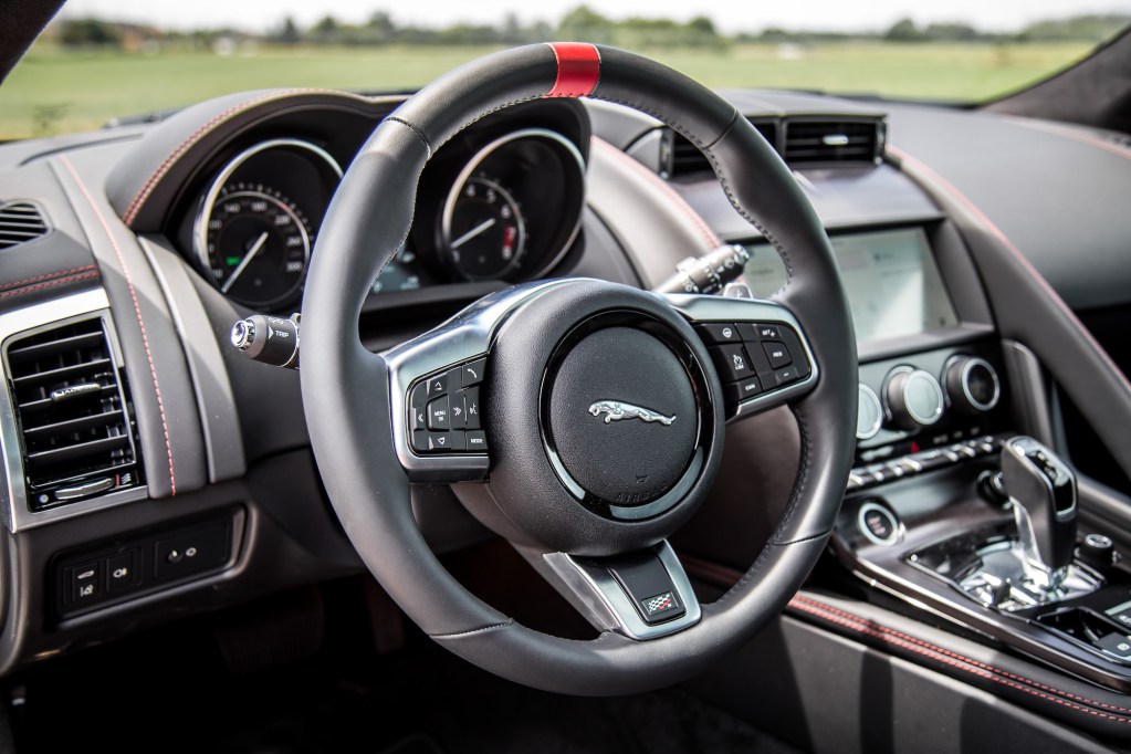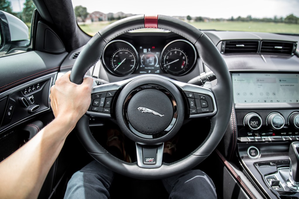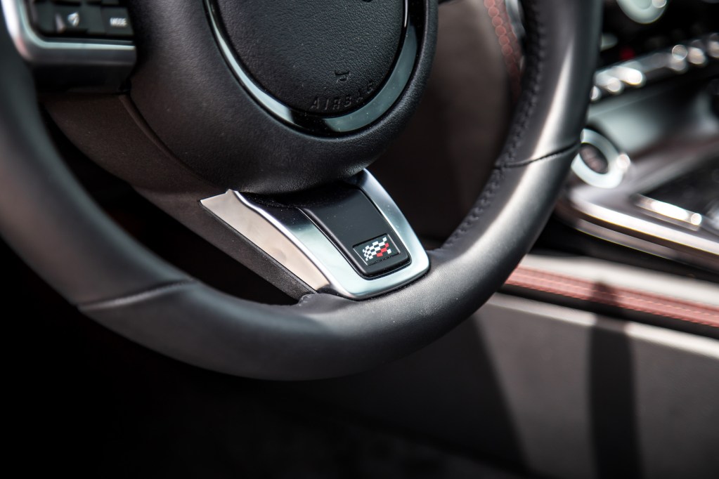 Unique additions include red brake calipers, red seat belts and treadplates, suede headliner, 20-inch gloss black wheels, brushed aluminum interior trim, a red stripe on the top of the steering wheel, and a checkered flag emblem embossed on the front grill, seats, bottom of the steering wheel, and carpet mats. There are only three paint colours available: white, black, and red. I have to say, even on its sixth-year running, the F-Type design is still as head turning as it was before and has aged like a fine wine, a rare attribute in the ever-changing and progressive automotive world. Other notable standard features include adaptive dampers, brake-based torque vectoring, and a two-stage active exhaust that allows this F-Type to sing and bark to the stratosphere.