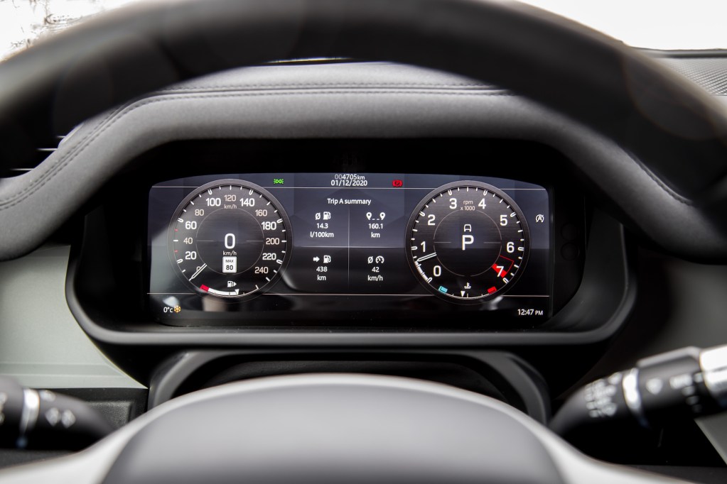 The brakes, more specifically the brake pedal, remains the weakest part of the powertrain. The Defender uses a brake pedal mated to an actuator-controlled piston which applies the braking effort. This makes automated braking via the safety systems quicker, but it means the pedal conveys a hybrid-like, nonlinear, springboard feeling. It’s touchy, overly sensitive, and makes it tough to modulate smooth stops. Sudden hard braking will also give drivers a lesson on why you should bolt down loose items.