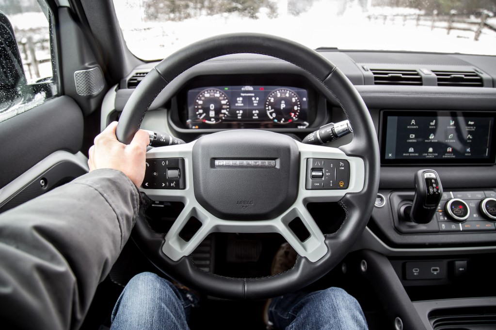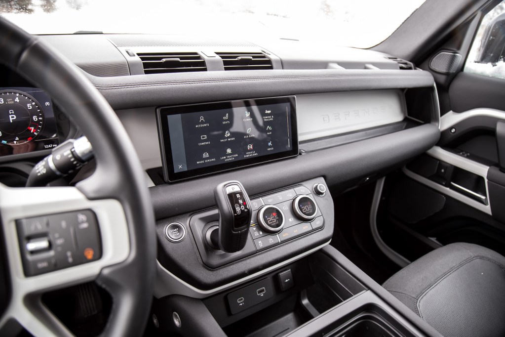 And it shows. The Defender doesn’t feel like driving an antiquated four-wheel drive truck. There’s polish in its movements, suppleness in the way it graces undulations, and a skilled drivetrain that harmonizes it all together. The straight-six engine that we tested in the P400 SE is a welcome companion, never struggling to get this heavyweight off its feet. It’s strong, smooth, and surprisingly loves to rev, making a decent exhaust grunt in the process. There’s enough thrust here that we don’t see the need for a V8 – not that this engine is any more fuel efficient. We averaged 15.1 L/100km with a mix of highway and city driving. The 8-speed gearbox is also one of the smoothest we’ve ever tested in a Land Rover. You will never feel it jerking or lugging for a gear, and that mild hybrid system really butters the whole thing up.