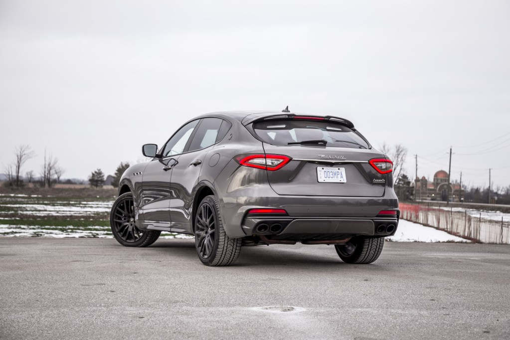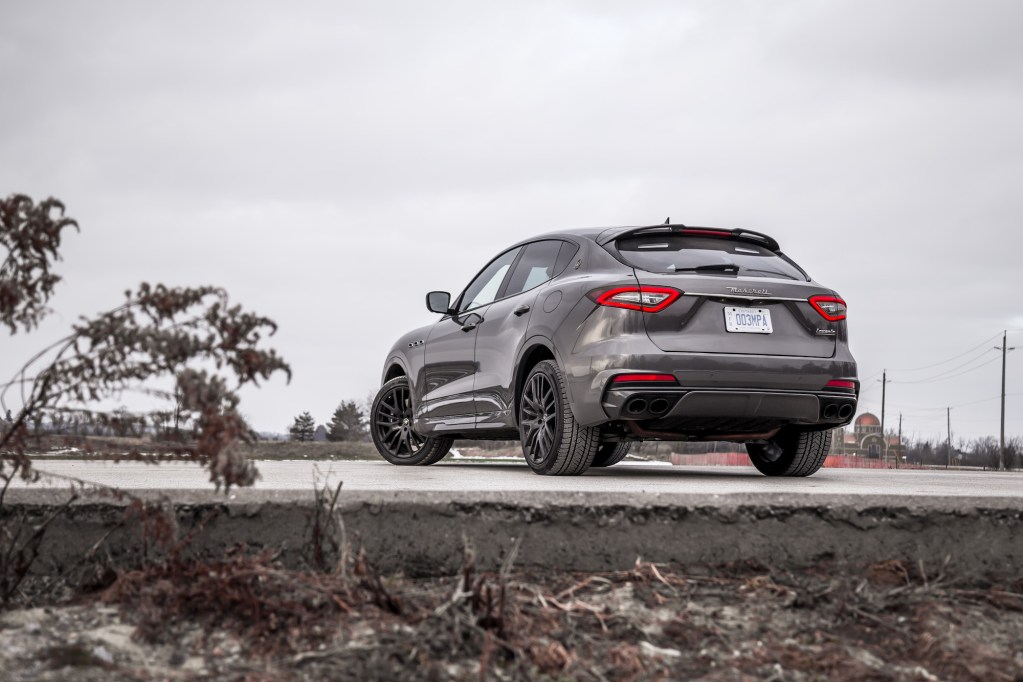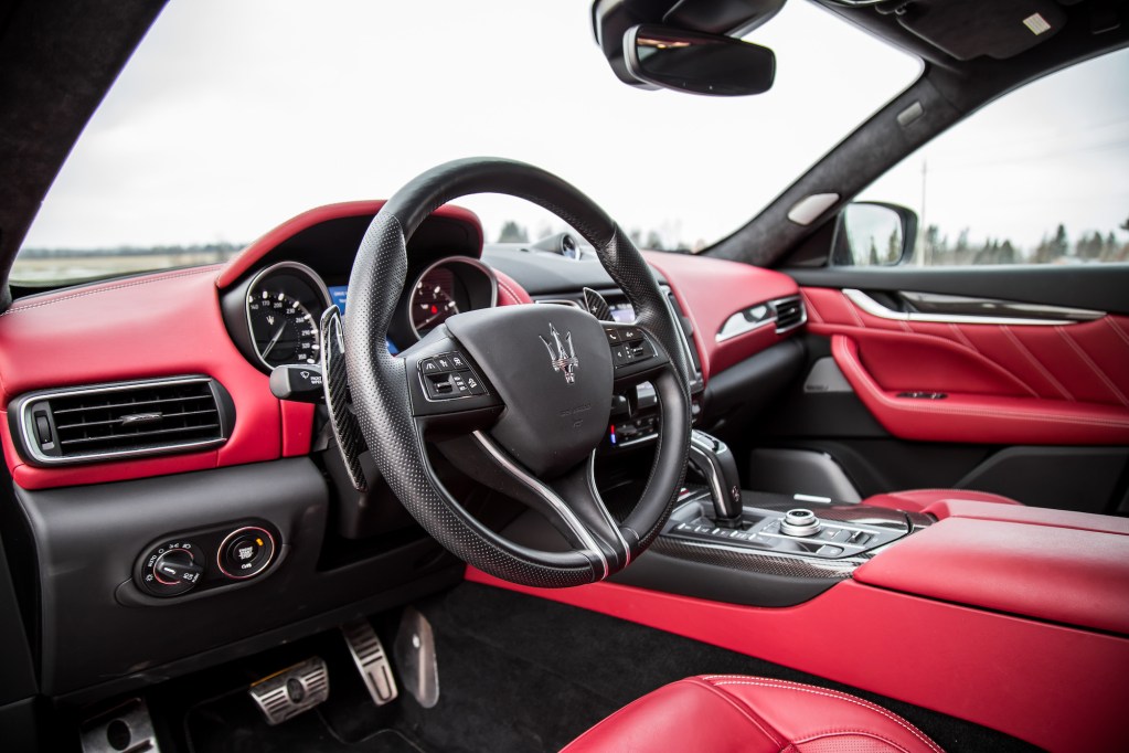 The Levante shares a platform with the Ghibli and Quattroporte but the chassis has been stiffened for the Trofeo, and adjustable via a dedicated button.The addition of an adaptive air suspension results in a taut and controlled ride. While heavy, the motions feel deliberate and never unwieldy. It’s always aware of where it’s rolling and how to counteract the inertial mass but as a whole, the Trofeo doesn’t hold a candle to the athleticism of a Cayenne or the wonderfully damped X5 M. You shouldn’t expect too much from the fuel economy department, either. Our burly V8 SUV averaged 16.3 L/100km with a mix of both city and highway driving. Then again, our undeniable tendency to caress the limiter to uncork those vocals surely didn’t help the cause.