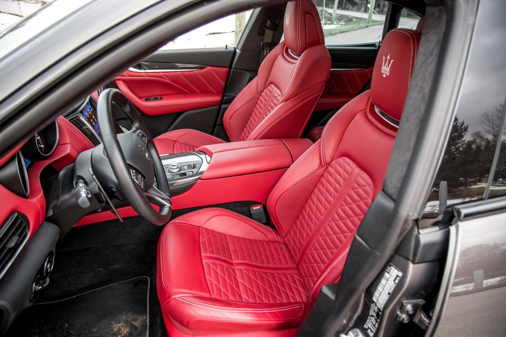 The lack of a big, shouty Trofeo badge on the trunk lid that lets passersby know you spent a considerable sum over a GTS is not a bad thing. The mellifluous exhaust does most of the talking anyways. But the Levante was never a bad looking vehicle to begin with, and tacky badges are the last thing it requires. Fixed with an adaptive air suspension that lowers its stance considerably, the Levante Trofeo remains one of the best looking SUVs on the market. Its long front hood and tapered back roofline makes it appear like an Italian Infiniti FX. All business in the back, party in the front. The shark-like front grill is what gives the Levante its substantial presence on the road, but it’s still a shame that they replaced the metal trident badge with a plastic one so it does not interfere with the radar and cameras that sit behind it.