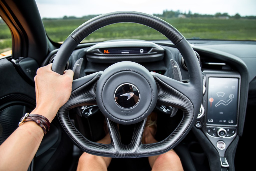 The output from the mid-mounted 4.0-litre twin-turbocharged V8 remains unchanged at 710 hp and 568 lb-ft. Power peaks around 7,000 rpm but it redlines past 8,000 rpm, an area worth exploring for the sake of the vocals. But it’s not just the forward propulsion that bewilders. Yank the 720S through a corner at speed and there’s no drama, no wheelspin, and no chirping of the rear tires. It flows through easier than water out of an inverted cup, and it’s not intimidating. Sainz and Norris sure are spoiled. The electro-hydraulic steering relays an inordinate amount of grip information to your fingertips, allowing you to trust the car and its movements. It may weigh more than an all-electric rack that every other manufacturer is using, but the payoff with road tactility and driver involvement is worth the sacrifice. It’s as refreshing as dunking your head into ice water on a hot summer day. There are no wasted angles of steering wheel rotation, every millimetre of turn translates into decisive motion, and the front wheels feel like an organic extension of your arms.