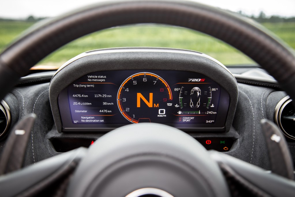 Unlike many others in this rarified air, ergonomics are not an afterthought with the 720S. It may not exhibit the same kind of flair and quirkiness but it’s no less serious. There’s a cupholder (you would be surprised how few supercars offer a proper center-mounted one (see: Huracan, NSX, LFA), a slinky center glovebox, and even a sliver of storage behind the 8.0-inch touchscreen, which by the way is large by supercar standards. While not the smoothest of units, the button prompts are large, the menus are easy to follow, and its simplicity should not go unpraised. The Bowers and Wilkins sound system isn’t bad but who needs the radio when you have the sound of internal combustion and nature’s elements above you? Turn that Billie Ellish nonsense off.