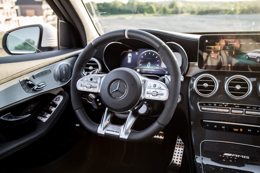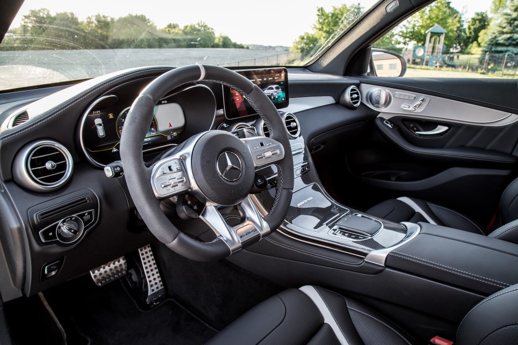That lovely boombox of an engine is a hand-built 4.0-litre twin-turbo V8 found in everything from the C 63 to the E 63. It’s an engine that we are familiar with, and are happy to once again exploit. Canada only receives the top-tier S model, and that means a healthy 503 hp and 516 lb-ft of torque that is then sent through a 9-speed multi-clutch automatic to all four wheels via its standard 4MATIC+ all-wheel drive system. With four wheels clawing for grip, 0-100 km/h comes in a swift 3.8 seconds, credentials that encroach into supercar territory. To put these numbers into perspective, the GLC 63 S is only one-tenths off of the Jaguar F-Type SVR Coupe and AMG’s own GT C.