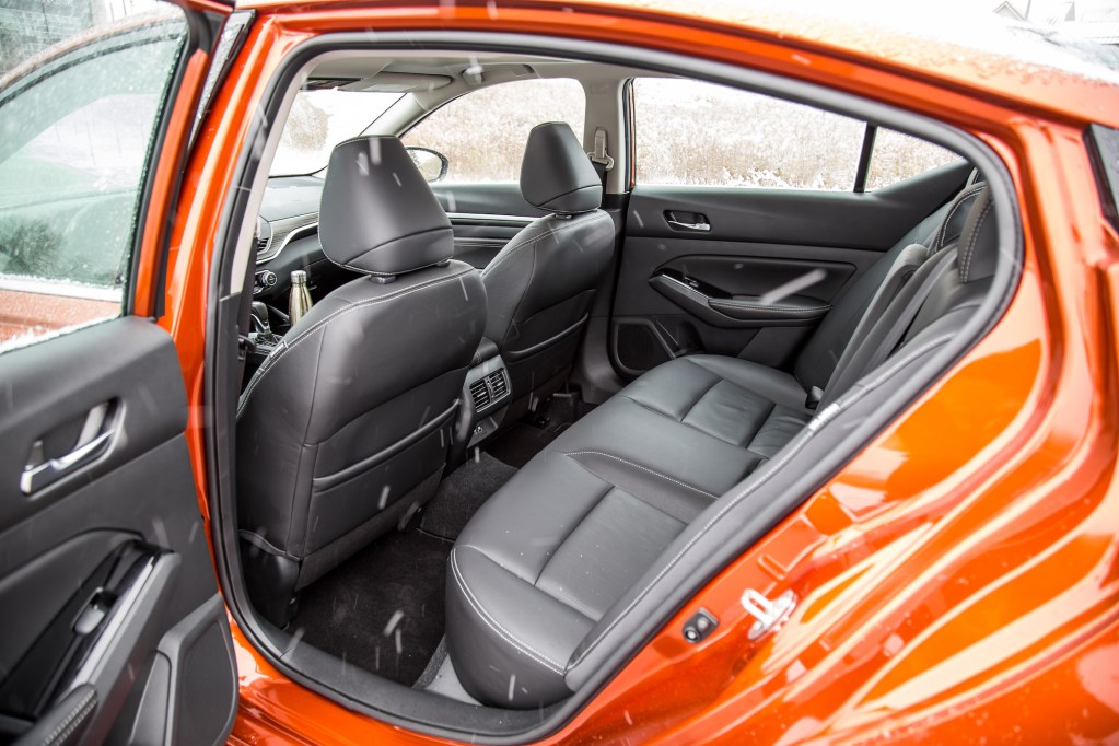 The slim flat-bottomed steering wheel is a neat sporting touch but it’s wrapped in a grainy leather-ish material that doesn’t feel all that nice. The wood trim adorning the dashboard livens up the otherwise bleak interior but it lacks that whiff of ergonomics that make the Camry and Accord so effective. But one touch that Nissan (and Hyundai) installs into their vehicles, which often goes overlooked, is a wiper mode function that shows your current wiper status: off, intermittent, steady, or fast, so you’re not constantly guessing while you’re flicking the stalk up and down in a heavy snowstorm. Comes in handy as there is no automatic wiper sensing function available here.